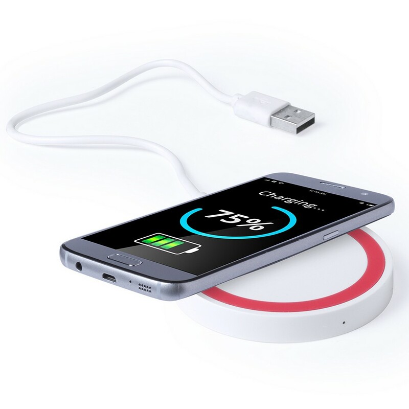Ładowarka bezprzewodowa 5W, działa z urządzeniami posiadającymi możliwość ładowania indukcyjnego, wejście micro USB 5V/2A, kabel micro USB w komplecie