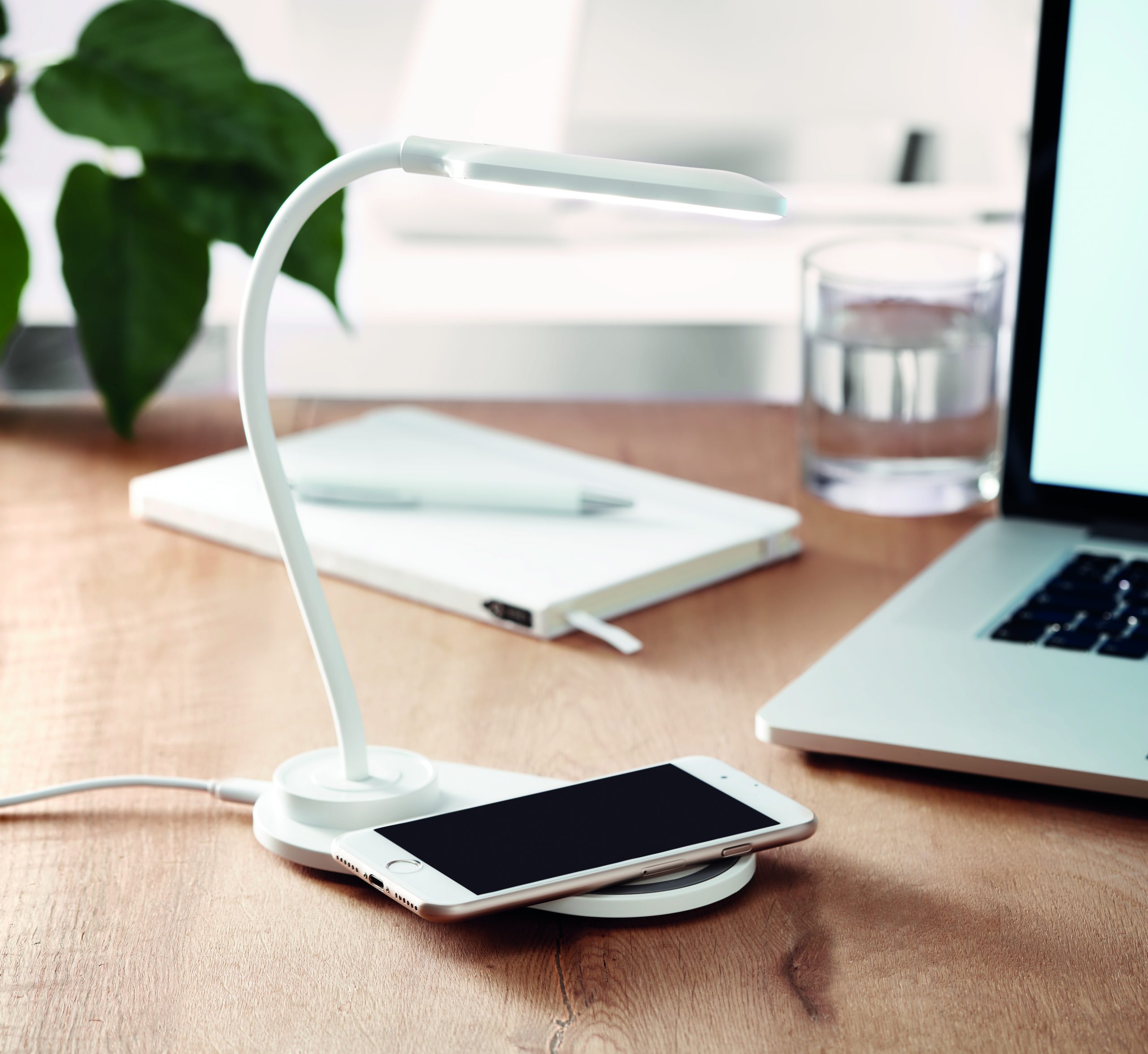 ABS Lampka biurkowa z 10 diodami LED i bezprzewodową ładowarką 10W. Ekran dotykowy. Wyjście: DC 9V/1.1A (10W) do szybkiego ładowania.