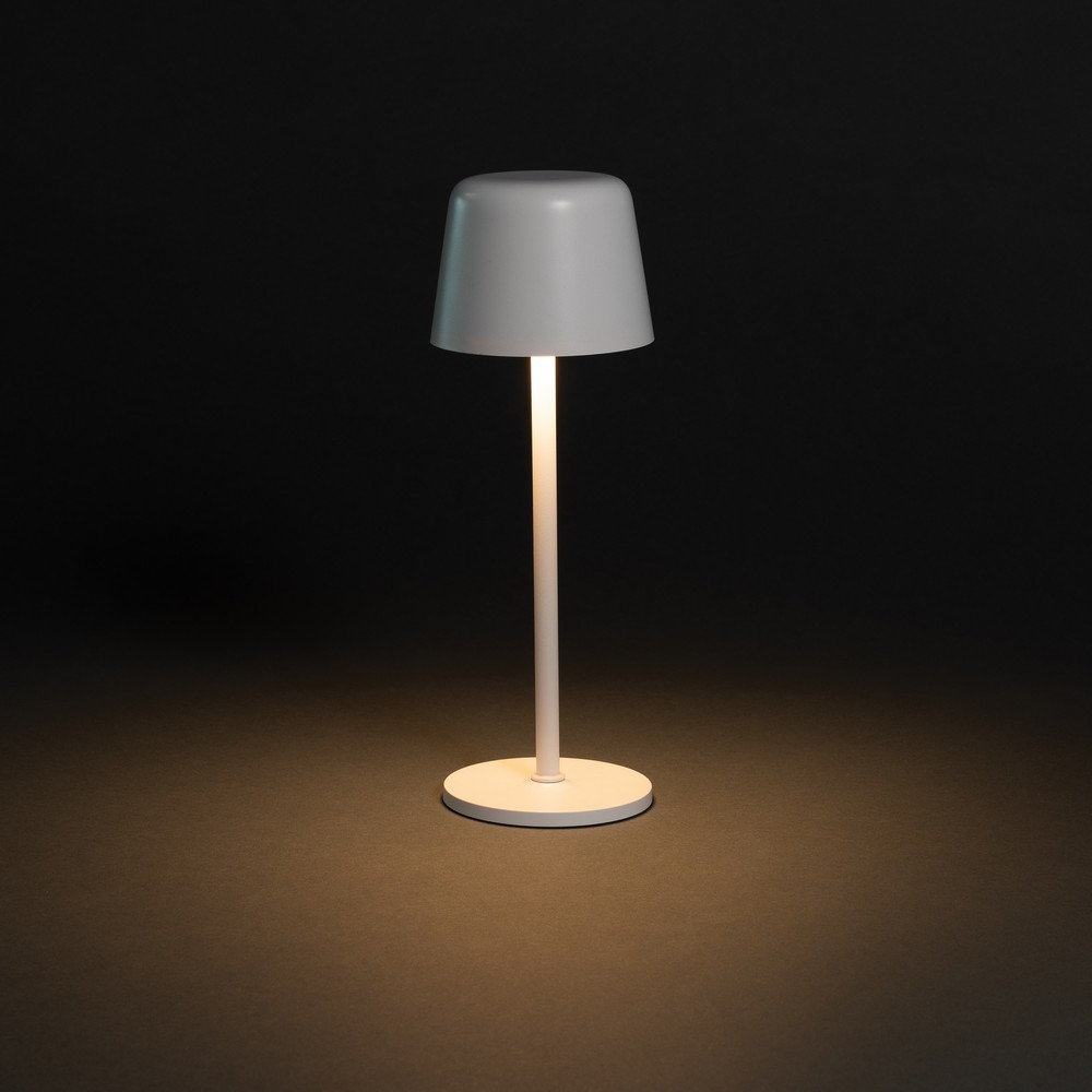 Lampka na biurko, lampka stołowa, wykonana z ABS i metalu z recyklingu, 3 tryby świecenia, wbudowany akumulator o pojemności 1200 mAh umożliwia świecenie do 8 godzin na jednym ładowaniu, ponowne ładowanie w 3 godziny, ładowana przez USB C, kabel 80 cm z TPE z recyklingu w komplecie, w pudełku z certyfikatem FSC® mix