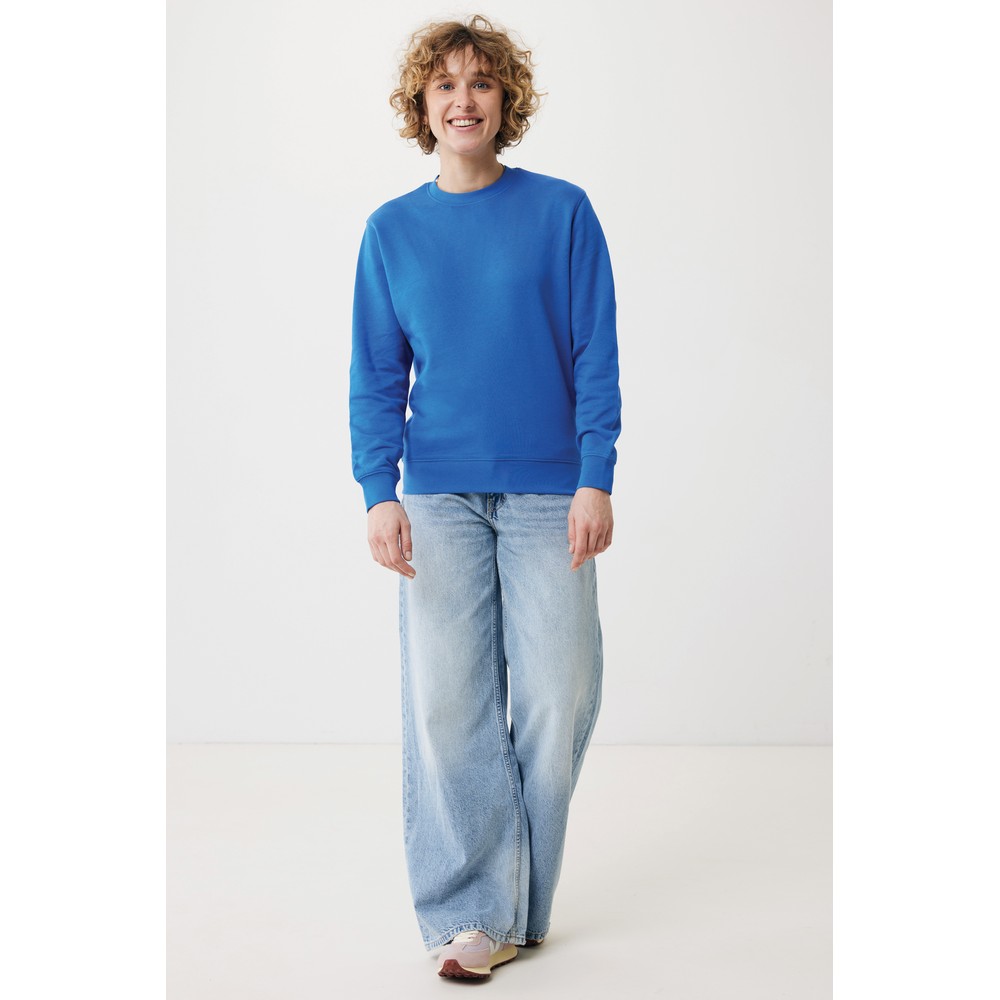 Lekki sweter, unisex, regularny krój, okrągły dekolt, długie rękawy, wykonana w 30% z bawełny z recyklingu i w 70% z bawełny organicznej o gramaturze 280 g/m2, posiada wbudowany znacznik AWARE™, który potwierdza wykorzystanie materiałów z recyklingu, posiada kod QR na metce, który prowadzi do cyfrowego paszportu produktu, 2% wpływów z każdego sprzedanego produktu z kolekcji Impact jest przekazywane na rzecz Water.org, ślad węglowy produktu: 7,04 kg CO2