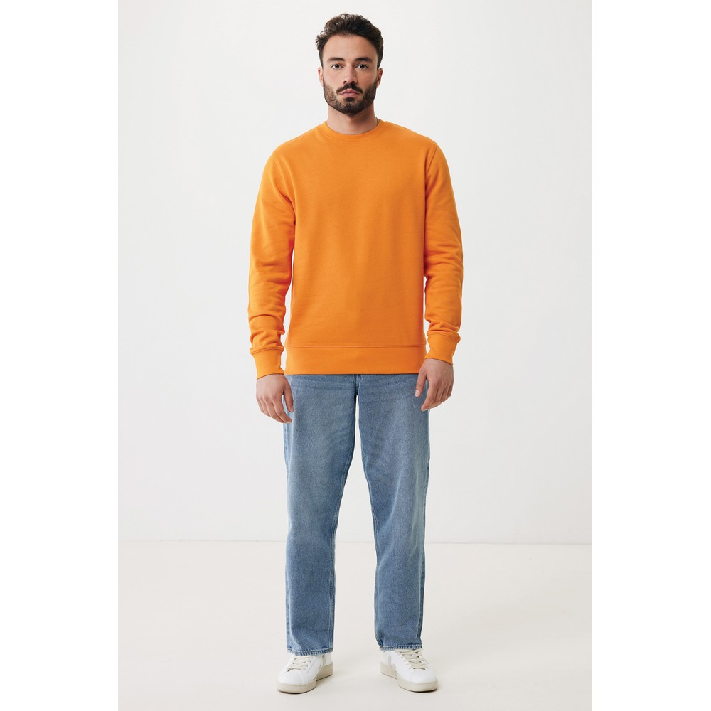 Lekki sweter, unisex, regularny krój, okrągły dekolt, długie rękawy, wykonana w 30% z bawełny z recyklingu i w 70% z bawełny organicznej o gramaturze 280 g/m2, posiada wbudowany znacznik AWARE™, który potwierdza wykorzystanie materiałów z recyklingu, posiada kod QR na metce, który prowadzi do cyfrowego paszportu produktu, 2% wpływów z każdego sprzedanego produktu z kolekcji Impact jest przekazywane na rzecz Water.org, ślad węglowy produktu: 7,04 kg CO2