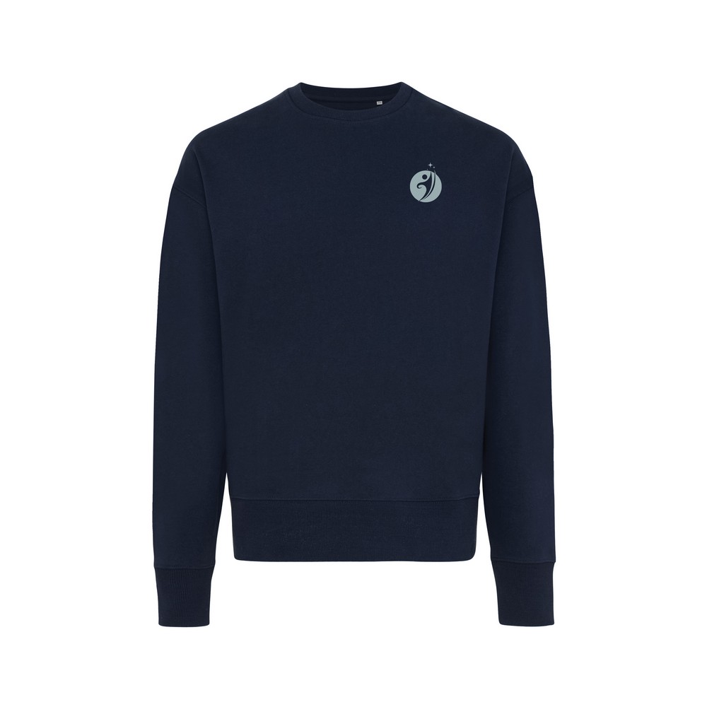 Bluza, unisex, długie rękawy, luźny krój, splot Brushed Sweat, okrągły dekolt, wykonana w 50% z bawełny z recyklingu i w 50% z bawełny organicznej 340 m/m2, bez dodatku poliestru, posiada wbudowany znacznik AWARE™, który potwierdza wykorzystanie materiałów z recyklingu, posiada kod QR na metce, który prowadzi do cyfrowego paszportu produktu, 2% wpływów z każdego sprzedanego produktu z kolekcji Impact jest przekazywane na rzecz Water.org, ślad węglowy produktu: 11,87 kg CO2