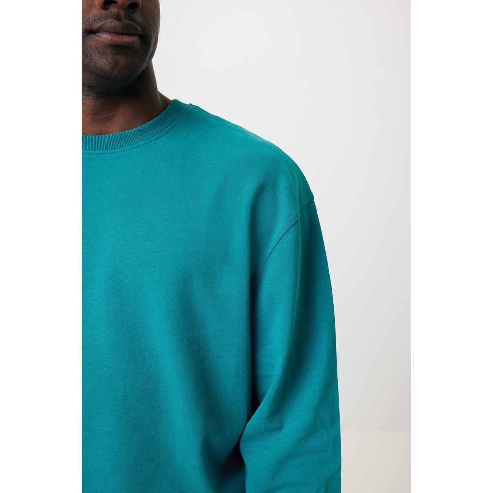Bluza, unisex, długie rękawy, luźny krój, splot Brushed Sweat, okrągły dekolt, wykonana w 50% z bawełny z recyklingu i w 50% z bawełny organicznej 340 m/m2, bez dodatku poliestru, posiada wbudowany znacznik AWARE™, który potwierdza wykorzystanie materiałów z recyklingu, posiada kod QR na metce, który prowadzi do cyfrowego paszportu produktu, 2% wpływów z każdego sprzedanego produktu z kolekcji Impact jest przekazywane na rzecz Water.org, ślad węglowy produktu: 11,93 kg CO2