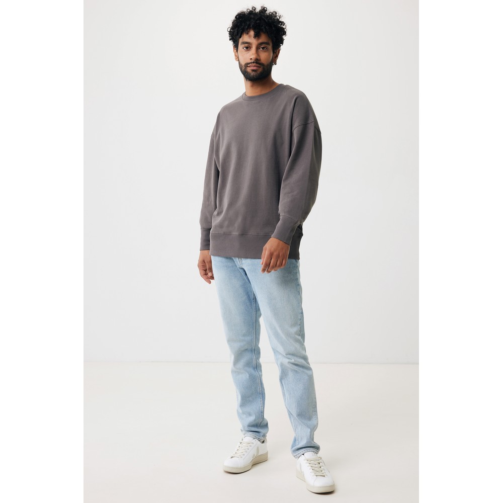 Bluza, unisex, długie rękawy, luźny krój, splot Brushed Sweat, okrągły dekolt, wykonana w 50% z bawełny z recyklingu i w 50% z bawełny organicznej 340 m/m2, bez dodatku poliestru, posiada wbudowany znacznik AWARE™, który potwierdza wykorzystanie materiałów z recyklingu, posiada kod QR na metce, który prowadzi do cyfrowego paszportu produktu, 2% wpływów z każdego sprzedanego produktu z kolekcji Impact jest przekazywane na rzecz Water.org, ślad węglowy produktu: 11,87 kg CO2