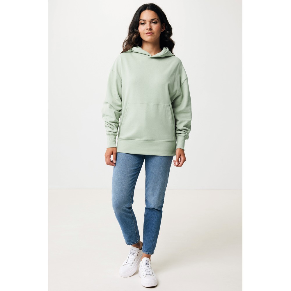 Bluza z kapturem, unisex, luźny krój, splot Brushed Sweat, długie rękawy, dwuwarstwowy kaptur, niebarwiona bawełna wykonana w 50% z bawełny z recyklingu i w 50% z bawełny organicznej o gramaturze 340 g/m2, bez dodatku poliestru, posiada wbudowany znacznik AWARE™, który potwierdza wykorzystanie materiałów z recyklingu, posiada kod QR na metce, który prowadzi do cyfrowego paszportu produktu, 2% wpływów z każdego sprzedanego produktu z kolekcji Impact jest przekazywane na rzecz Water.org