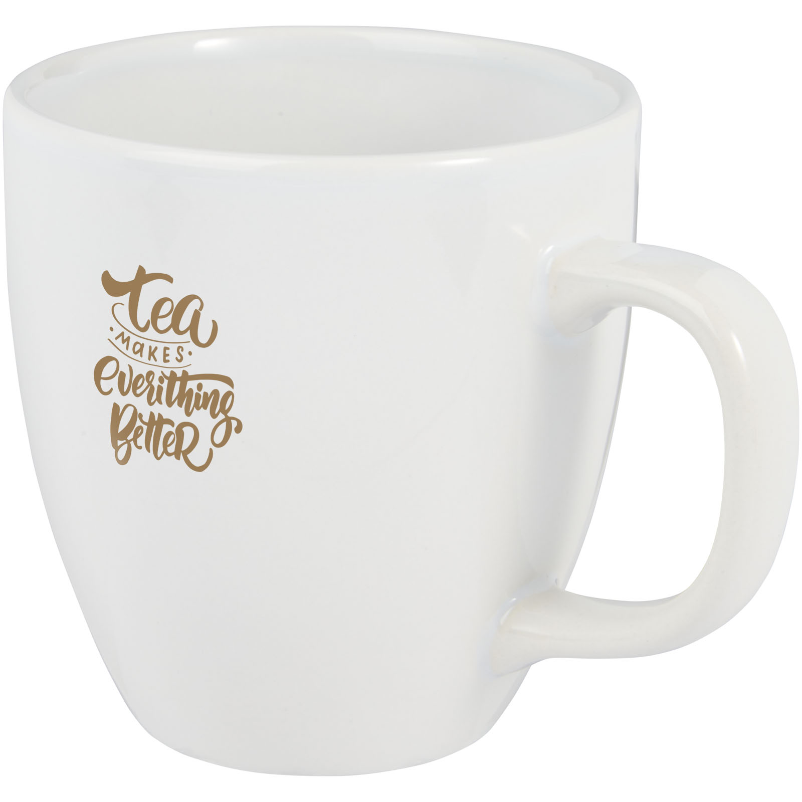 Ceramiczny kubek Moni ma modne połyskliwe wykończenie zapewniające elegancki wygląd. Posiada duży uchwyt, który zapewnia wygodny i solidny uchwyt. Kubek jest wystarczająco wszechstronny do użytku zarówno z gorącymi, jak i zimnymi napojami, co pozwala cieszyć się kawą, herbatą, zupą i nie tylko. Pojemność 430 ml. Wszystkie metody nadruku nadają się do mycia w zmywarce. Zapakowany w kartonowe pudełko upominkowe wykonane z materiałów pochodzących z recyklingu.