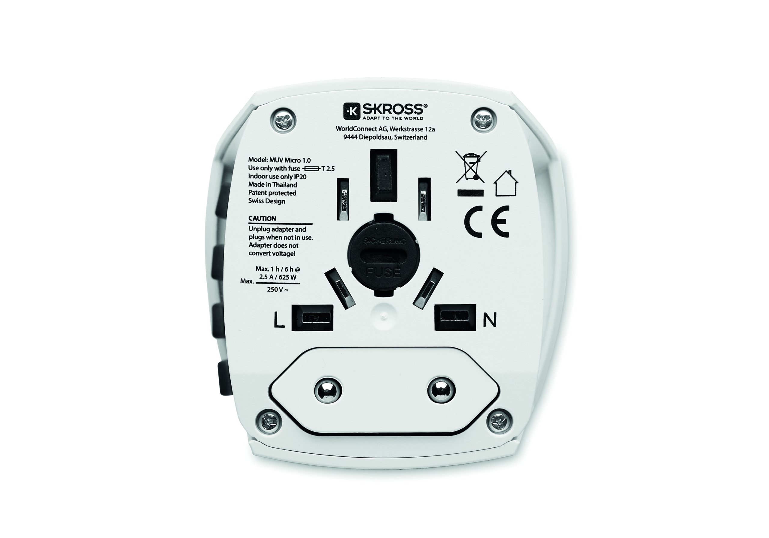 Uniwersalny podróżny adapter SKROSS. Odpowiedni w Europie, USA / Japonii, Australii / Chinach. 2-biegunowy, bez uziemienia. Spełnia wszystkie międzynarodowe normy i normy dotyczące bezpieczeństwa. Bezpieczny dla dzieci.