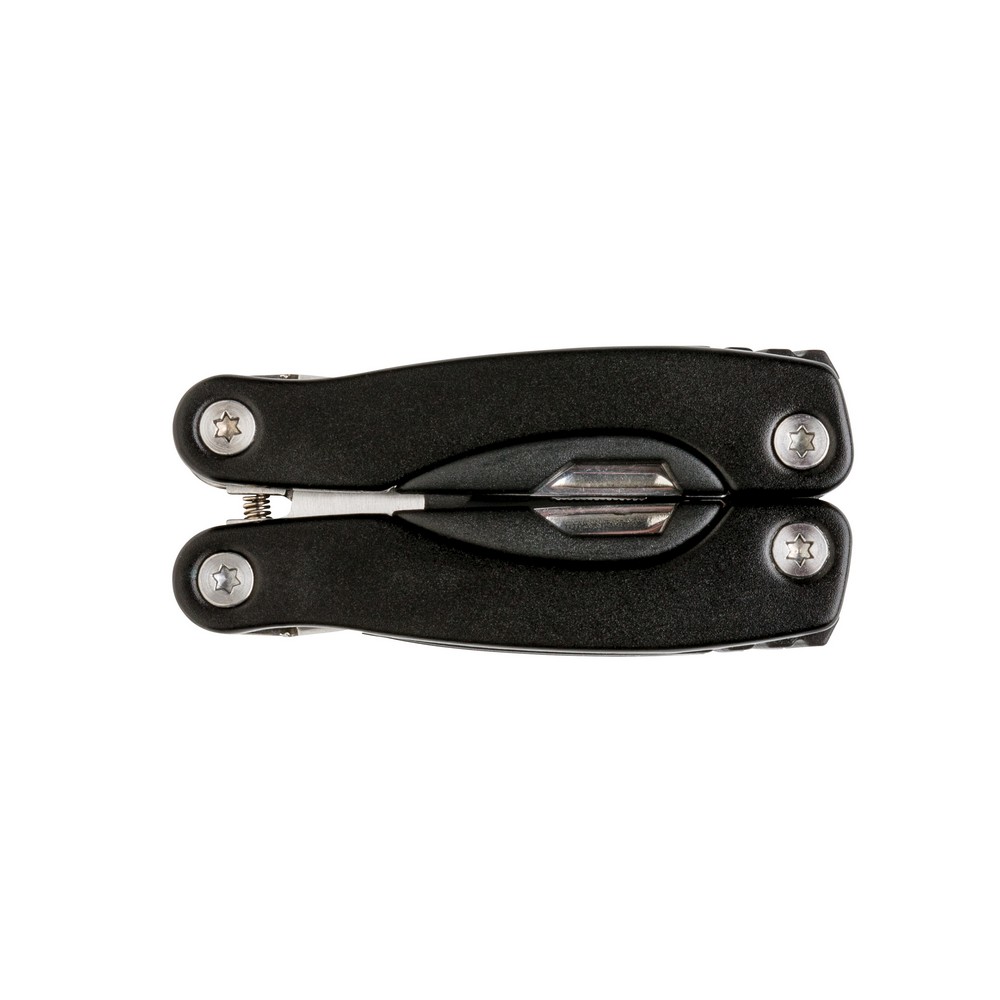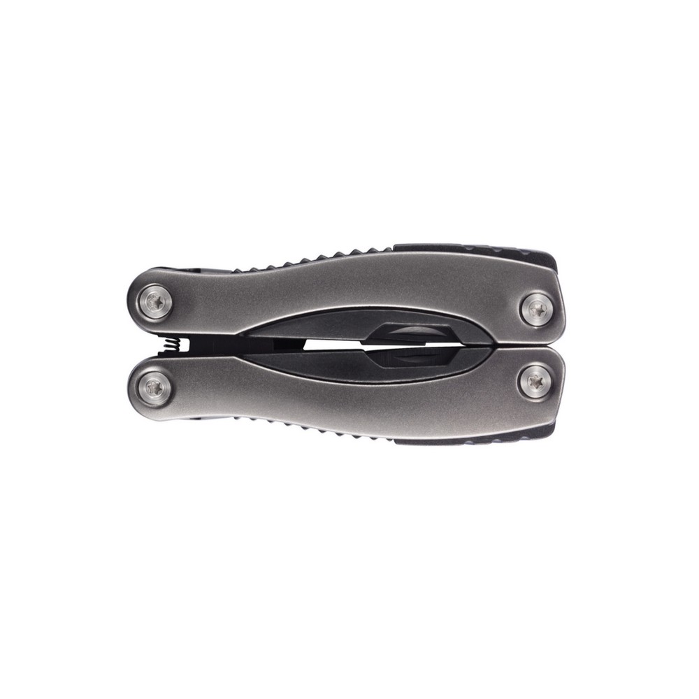 Narzędzie wielofunkcyjne, wykonane z aluminium, uchwyt z czarnymi detalami, 14 funkcji, czarny pokrowiec 600D w komplecie, ślad węglowy produktu: 2,53 kg CO2
