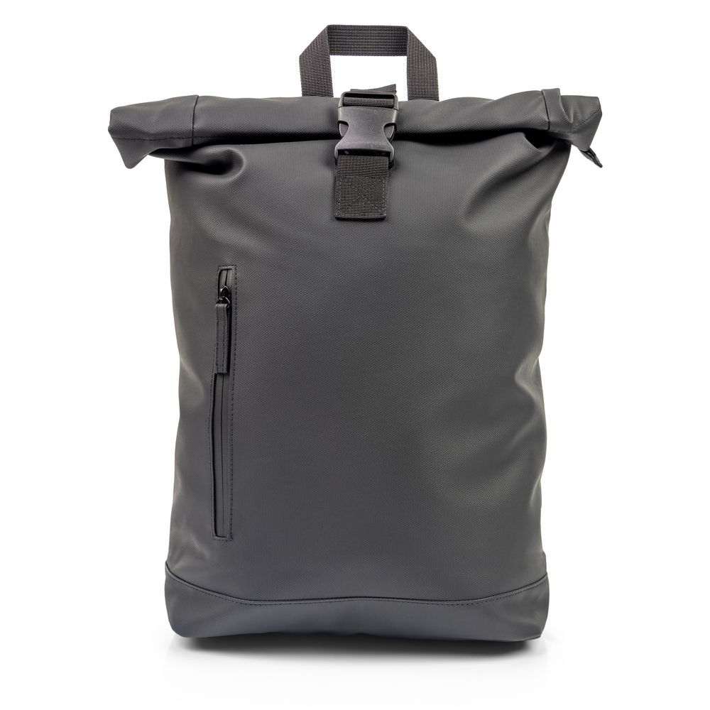 Zwijany plecak, rozwijalna główna kieszeń zamykana na klamrę, która umożliwia zwiększanie pojemności plecaka oraz lepiej chroni przed czynnikami atmosferycznymi po zwinięciu, przednia kieszeń na zamek błyskawiczny pomieści urządzenia mobilne takie jak telefon czy power bank, miękki tył i regulowane paski na ramię, produkt wykonany z poliestru