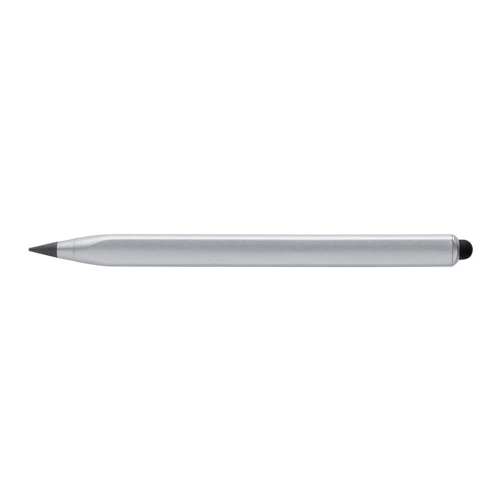Ołówek, linijka, touch pen, wykonany aluminium z recyklingu, dzięki wykorzystaniu specjalnej wolnościerającej się grafitowej końcówki długość pisania ołówka to około 20 000 metrów w porównaniu z tradycyjnym ołówkiem którego długość pisania to około 200 metrów, notatki można zmazać standardową gumką do mazania, ślad węglowy produktu: 0,1 kg CO2