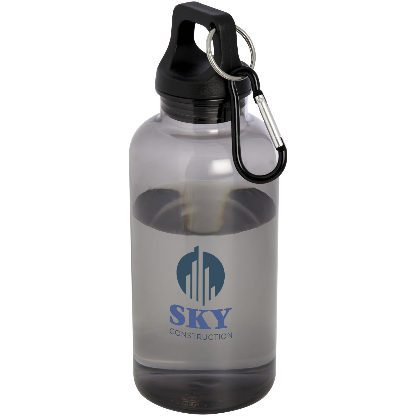 Dzięki tej wytrzymałej, a jednocześnie lekkiej butelce o pojemności 400 ml wykonanej z tworzyw sztucznych pochodzących z recyklingu możesz stale dbać o odpowiednie nawodnienie organizmu. Jest idealnym towarzyszem podczas ćwiczeń, podczas jednodniowych wycieczek lub w biurze. Jednościenna butelka Oregon ma zakręcaną pokrywkę i zapewnia dużo miejsca na umieszczenie dowolnego logo. Przypnij butelkę do torby za pomocą przymocowanego karabińczyka (nie nadaje się do wspinaczki), aby jej nie zgubić. Nie zawiera BPA i została przetestowana i zatwierdzona zgodnie z niemieckimi przepisami dotyczącymi bezpieczeństwa żywności (LFGB) oraz pod kątem zawartości ftalanów zgodnie z przepisami REACH. Pokrywka i korpus są wykonane w 100% z tworzyw sztucznych pochodzących z recyklingu.