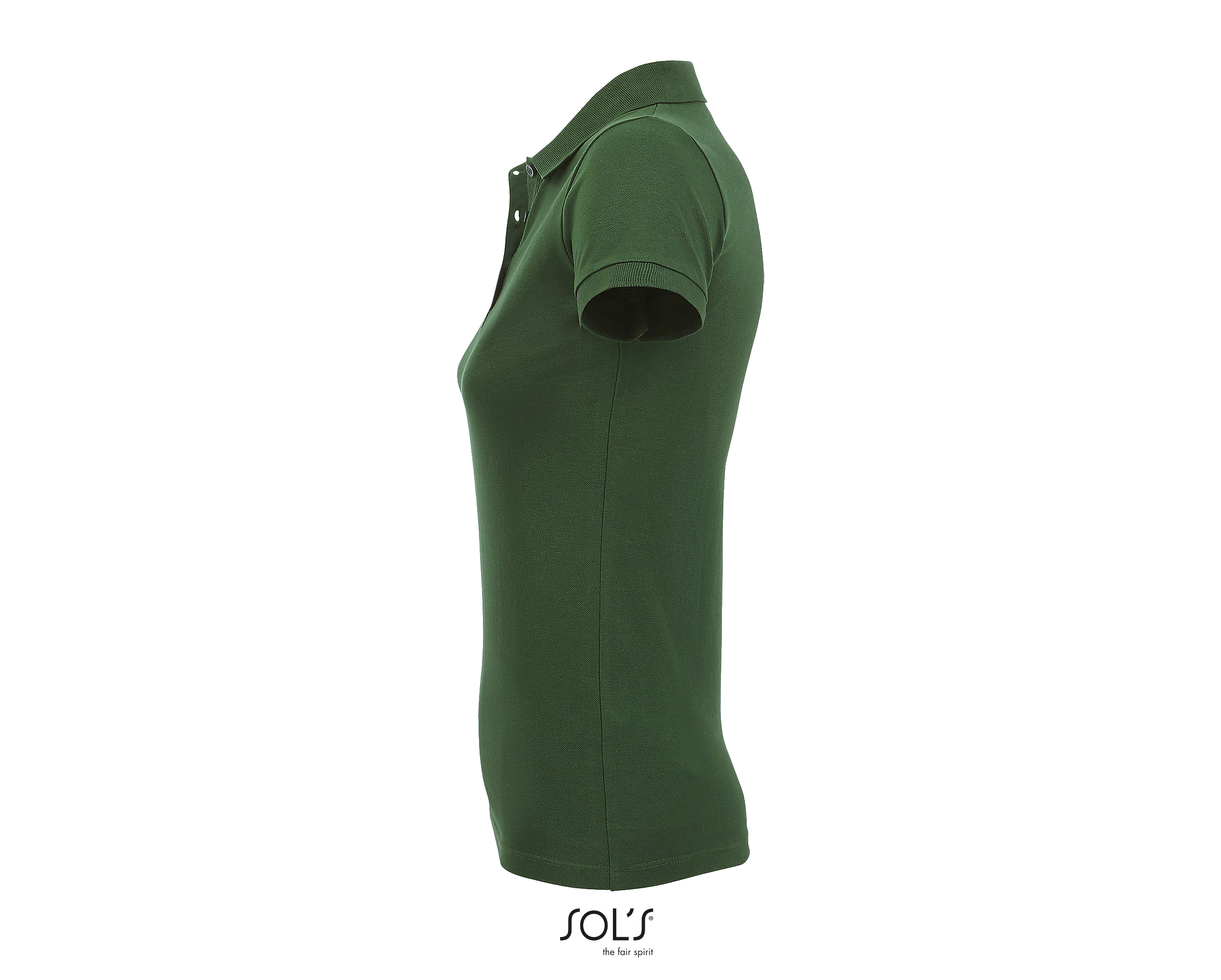 SOL’S PERFECT damska koszulka polo z prążkowanym kołnierzem i mankietami 1×1, wzmocniony szew przy szyi, 2 perłowe guziki, nowoczesny dopasowany krój ze szwem bocznym, zapasowy guzik po wewnętrznej stronie. Szczegóły dotyczące tkaniny: 100% czesanej bawełny z ćwiekami i pierścieniami 180g