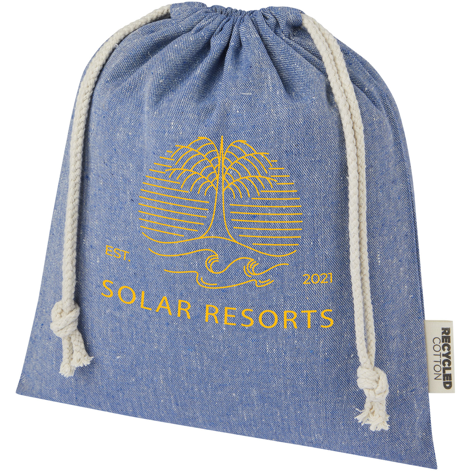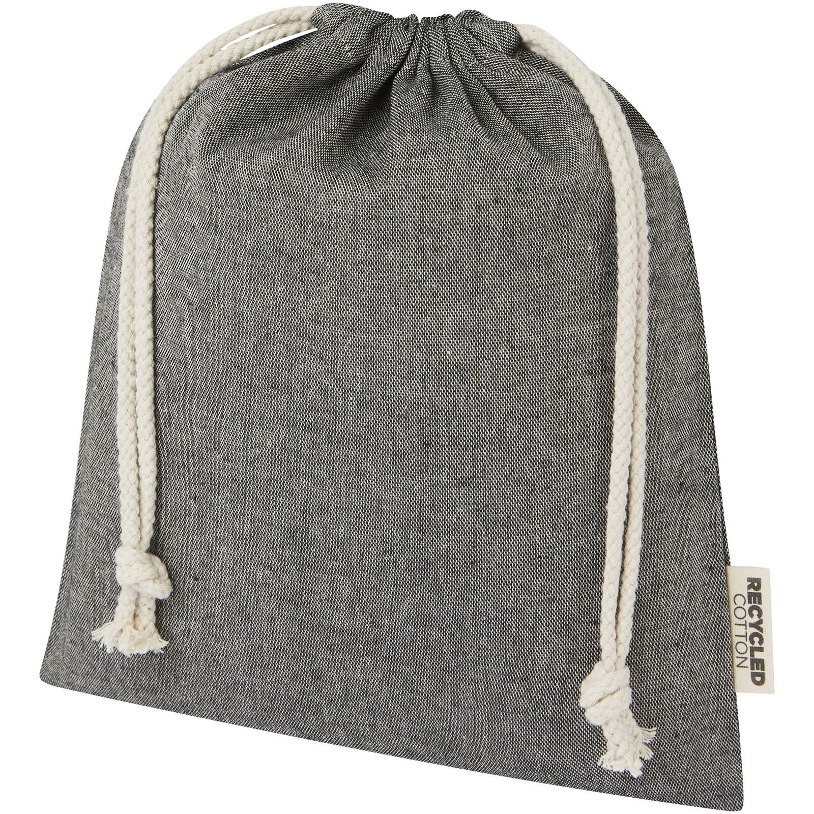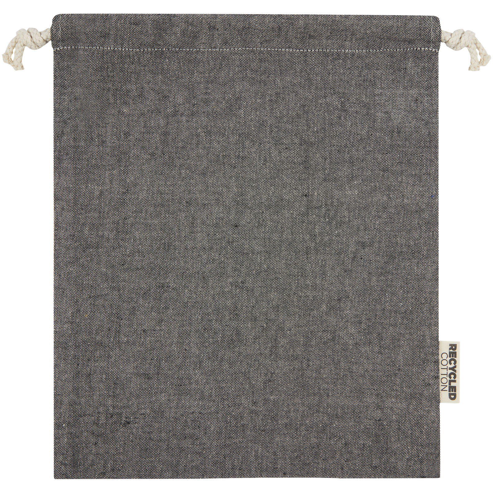 Torba upominkowa wykonana z bawełny z recyklingu z certyfikatem GRS z zamknięciem na sznurek bawełniany. Idealna do prezentów lub przechowywania przedmiotów. Wymiary: 25 x 30 cm.