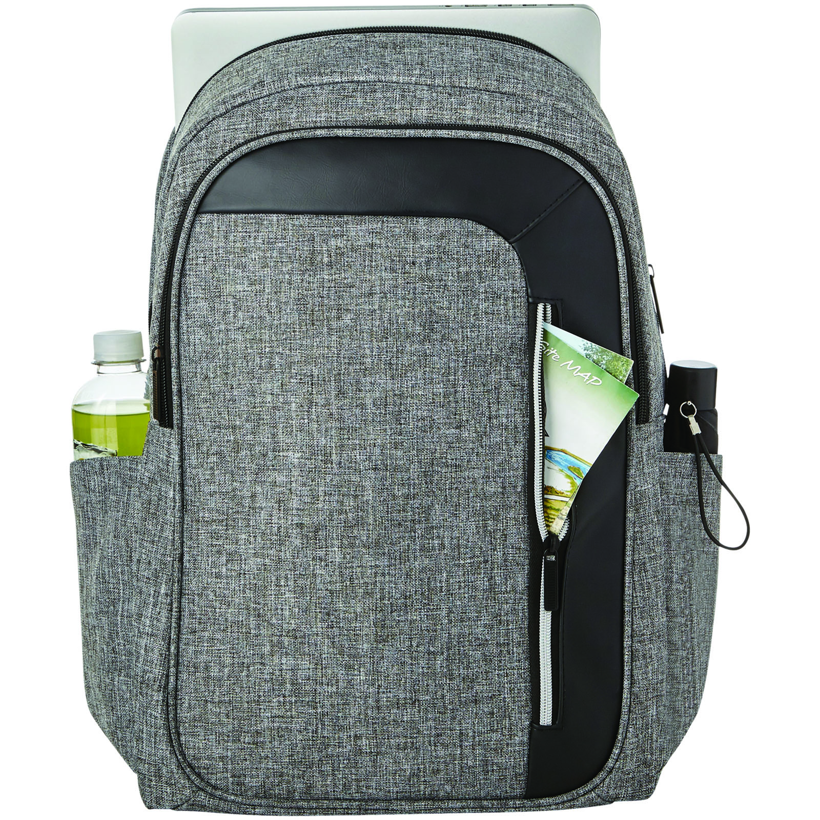 Plecak na laptop 15″ z kieszenią na przodzie zawierającą miejsce na klucze, oraz kieszonką z ochroną RFID na karty kredytowe. Główny przedział zapinany na zamek pomieści laptop 15″ i dodatkowo tablet w oddzielnej wyściełanej kieszeni. Zamek na froncie umożliwia szybki dostęp do przedniej kieszeni. Dwie dodatkowe kieszenie boczne. Wyściełane, regulowane szelki dają komfort użytkowania i możliwość zamocowania na nich innych przedmiotów. Posiada rączkę do przenoszenia oraz uchwyt umożliwiający założenie plecaka na walizkę. Ze względu na rodzaj barwników tkanin, splotów i nadruków mogą występować niewielkie różnice w kolorze rzeczywistego produktu.