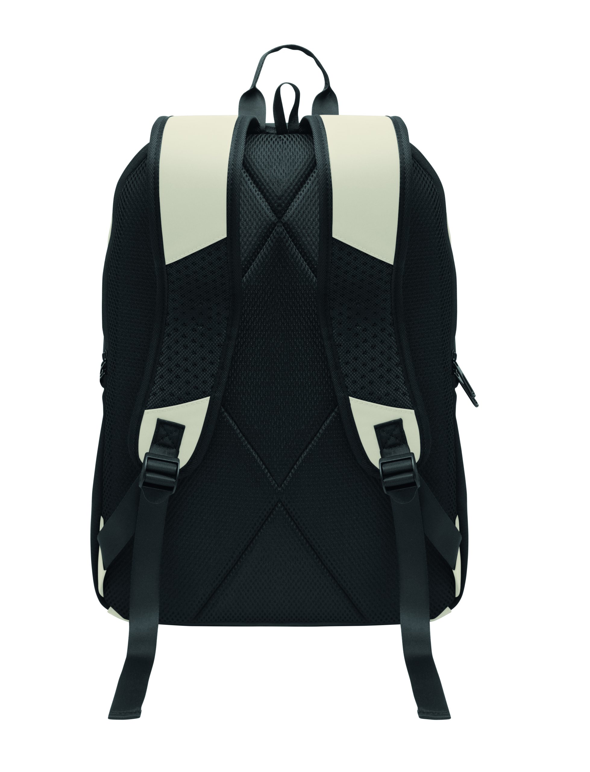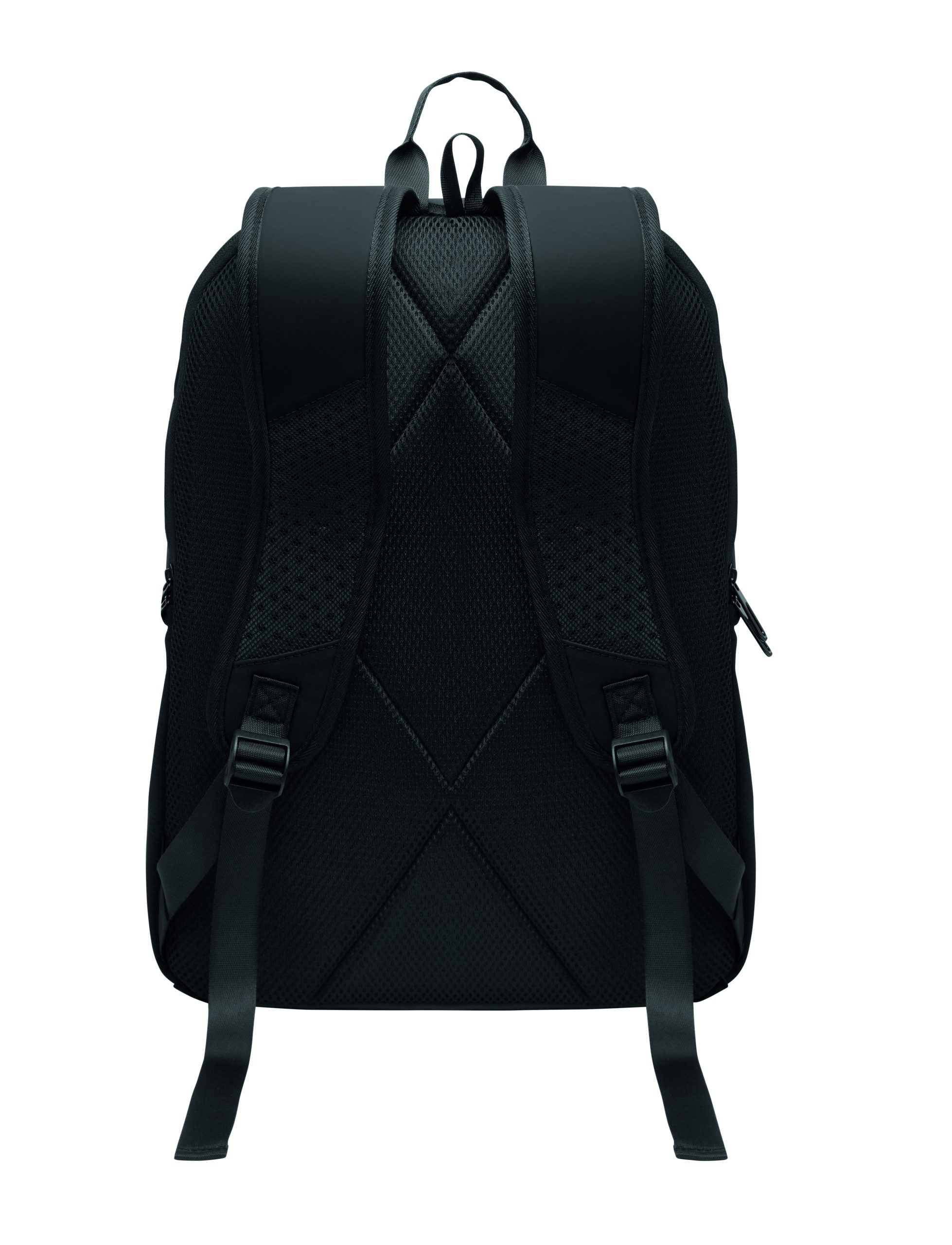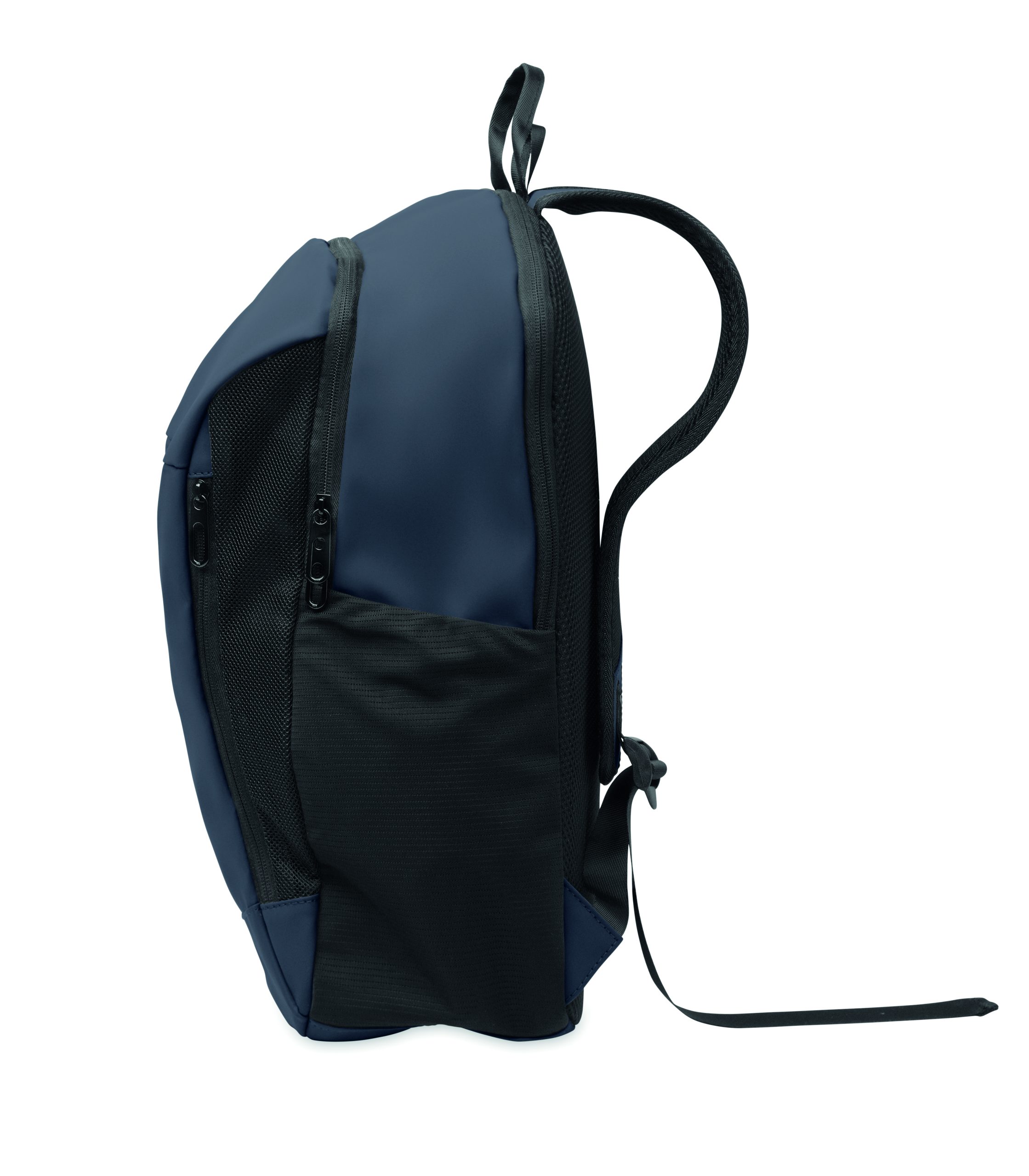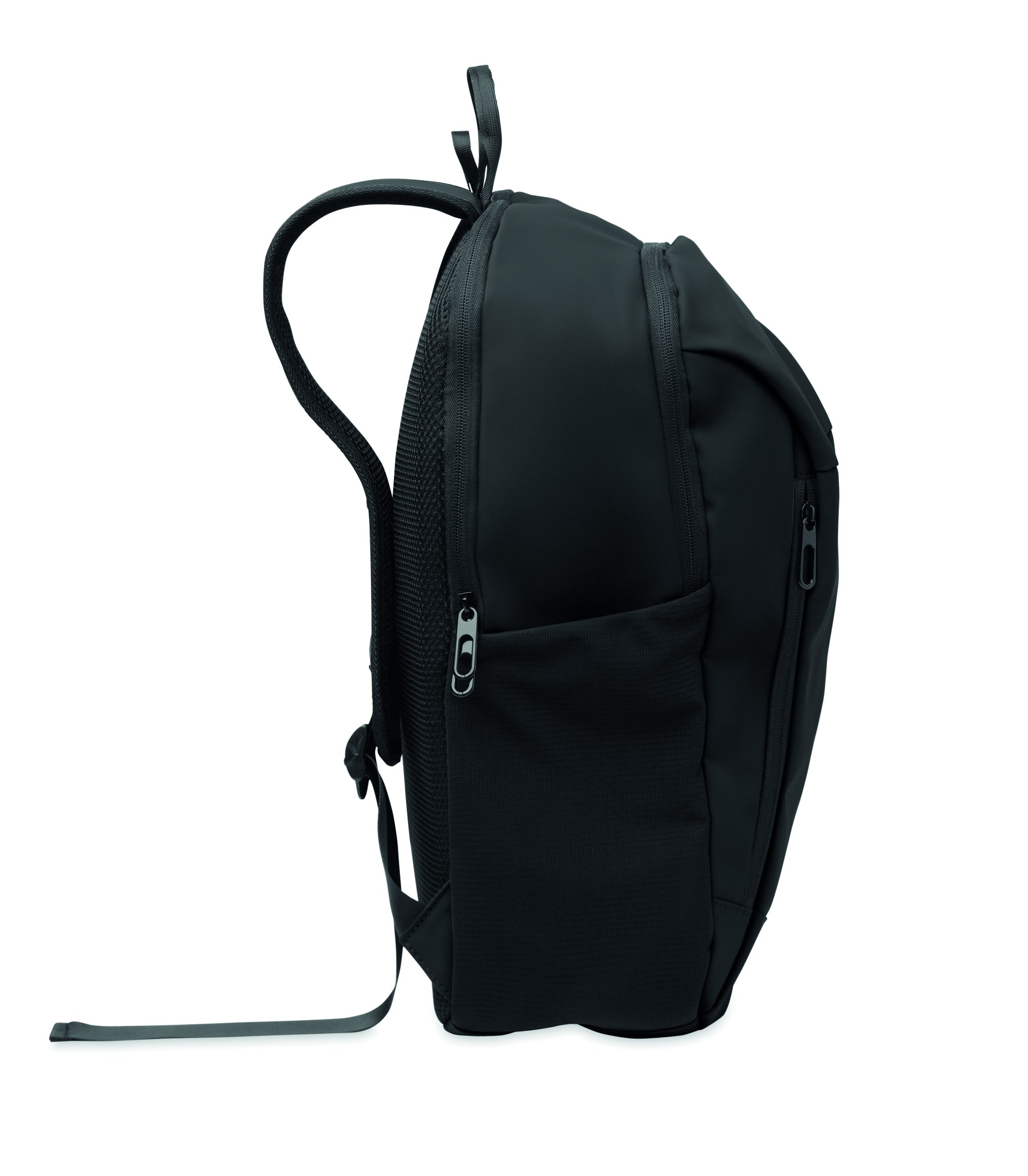 Plecak na laptopa 15 cali z miękkiego PU z wyściełanym tyłem i ukrytą komorą główną zapinaną na zamek. 1 przednia kieszeń zapinana na zamek, 2 przednie boczne kieszenie zapinane na zamek i 2 boczne kieszenie z elastycznej siatki. Podszewka z RPET 210D.