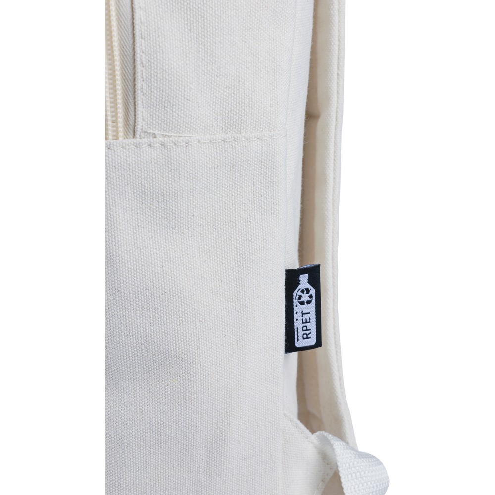 Plecak na laptopa 15″, posiada dużą komorę zapinaną na zamek z wyściełaną przegrodą na laptop 15 cali, dwie kieszenie wewnętrzne oraz dwie kieszenie zewnętrzne, w tym boczną kieszeń i małą przednią kieszeń na zamek, konstrukcja obejmuje wyściełane, regulowane szelki oraz uchwyt do przenoszenia, pojemność: 14L, maksymalne obciążenie: 13 kg, produkt wykonany polibawełny z recyklingu (330 g/m²), podszewka z poliestru 210D