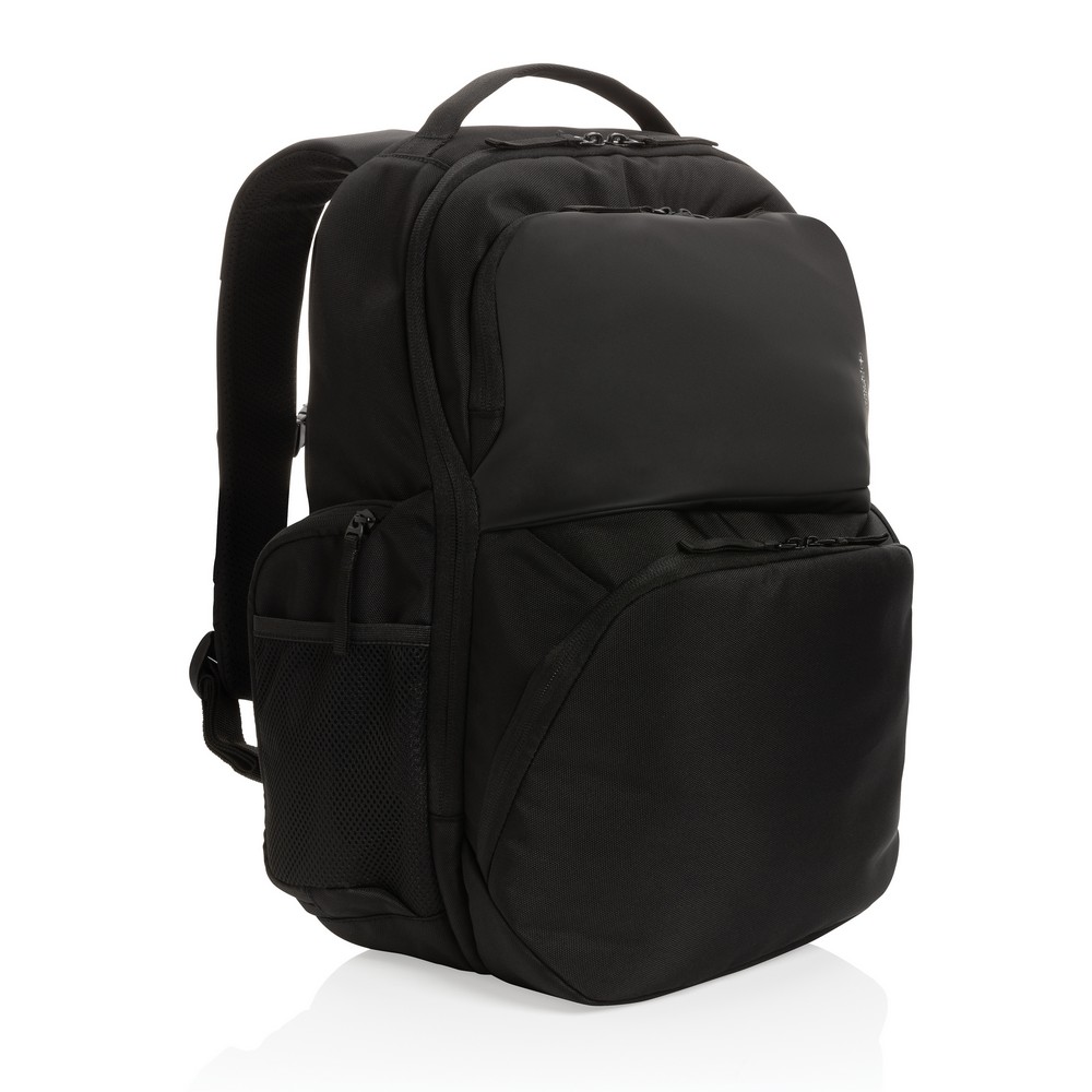 Plecak na laptopa 15,6″, 2 przestronne pojemne kieszenie z przodu oraz przegroda główna, 2 kieszenie po bokach, wykonany z 32,8 poddanych recyklingowi butelek PET (500 ml), dzięki zastosowaniu technologii AWARE™ wykorzystane materiały są identyfikowalne z pochodzenia, 2% wpływów z każdego sprzedanego produktu z kolekcji Impact jest przekazywane na rzecz Water.org, nie zawiera PVC