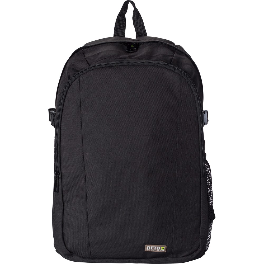 Plecak na laptopa 14″ z ochroną RFID, przegroda główna i kieszeń przednia zamykane na zamek, mniejsze kieszenie wewnątrz, boczna kieszeń siateczkowa, miękkie i regulowane paski na ramię