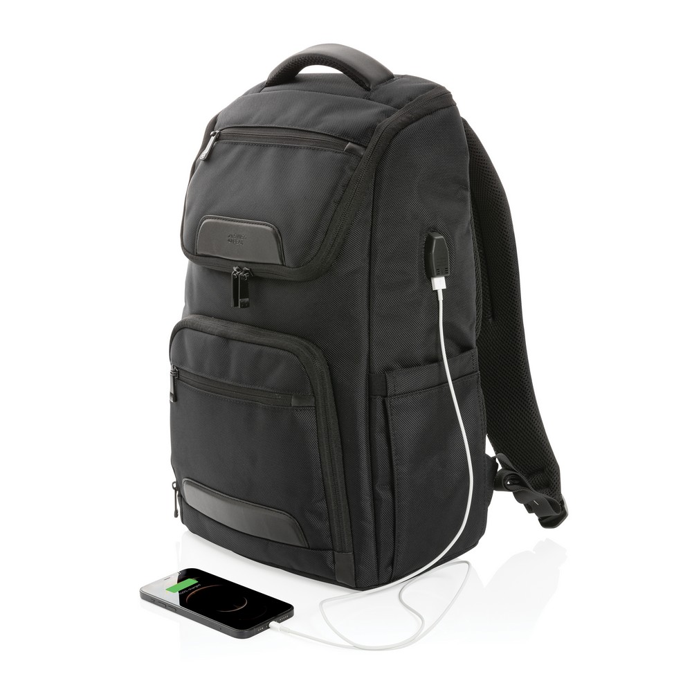 Plecak na laptopa 15,6″, kieszeń z ochroną RFID, wewnątrz, gniazdo USB do ładowania telefonów (power-bank nie jest dołączony)