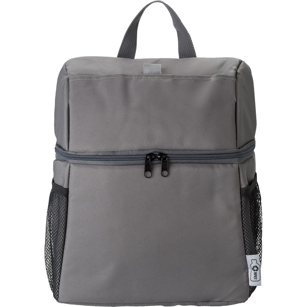 Plecak termoizolacyjny, wykonany z RPET, przegroda główna na zamek błyskawiczny, siateczkowe kieszenie boczne, regulowane paski na ramię