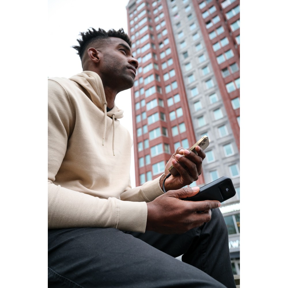 Power bank 10000 mAh, szybkie ładowanie, zintegrowane kable USB-C i Apple Lightning, dodatkowy port USB-C oraz USB-A, możliwość naładowania telefonu do czterech razy, cyfrowy wyświetlacz poziomu energii, wykonany z recyklingowanego ABS i TPE, zawartość materiałów z recyklingu: 21%, certyfikacja RCS, opakowanie z papieru kraft z certyfikatem FSC®, wolny od PVC, różnorodne napięcia i natężenia wyjściowe dla portów USB-A, USB-C i kabli wbudowanych