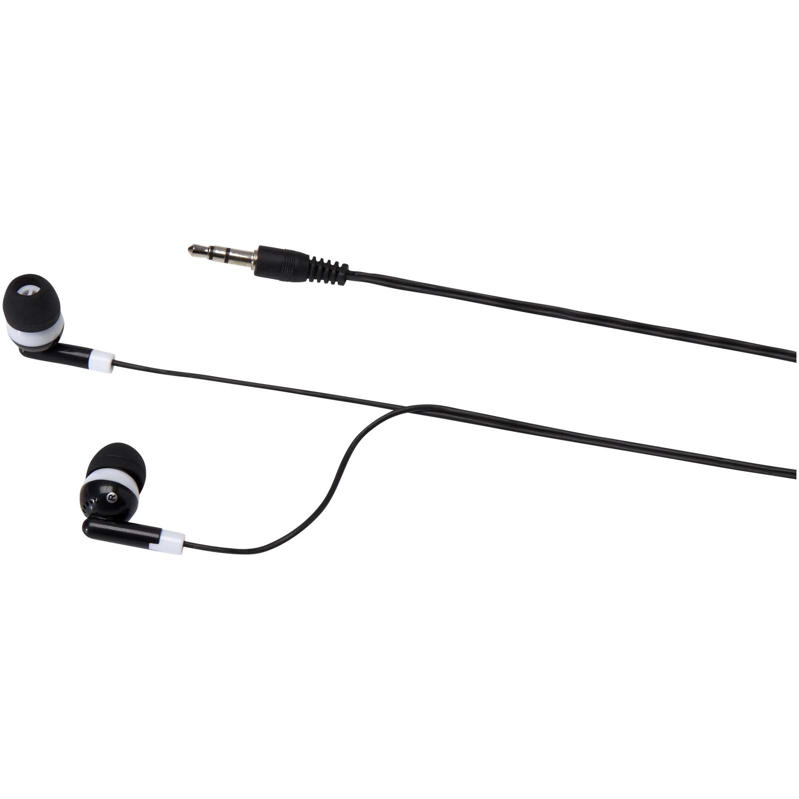 Słuchawki douszne Rebel to proste słuchawki douszne, których można używać z dowolnym standardowym urządzeniem audio z gniazdem audio 3,5 mm. Słuchawki douszne są umieszczone w trójkątnym etui z miejscem na kabel, wykonanym z plastiku pochodzącego z recyklingu, które dobrze chroni je przed uszkodzeniami zewnętrznymi.