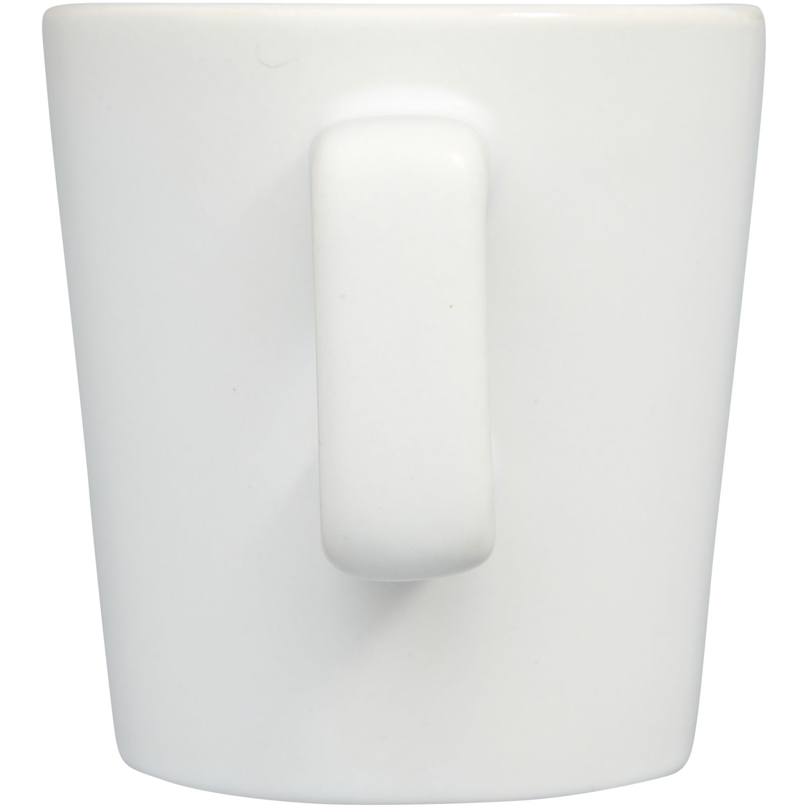 Nowoczesny kubek ceramiczny z matowym wykończeniem. Pojemność 280 ml. Wszystkie ozdoby nadają się do mycia w zmywarce. Zapakowany w kartonowe pudełko upominkowe wykonane z materiałów pochodzących z recyklingu.