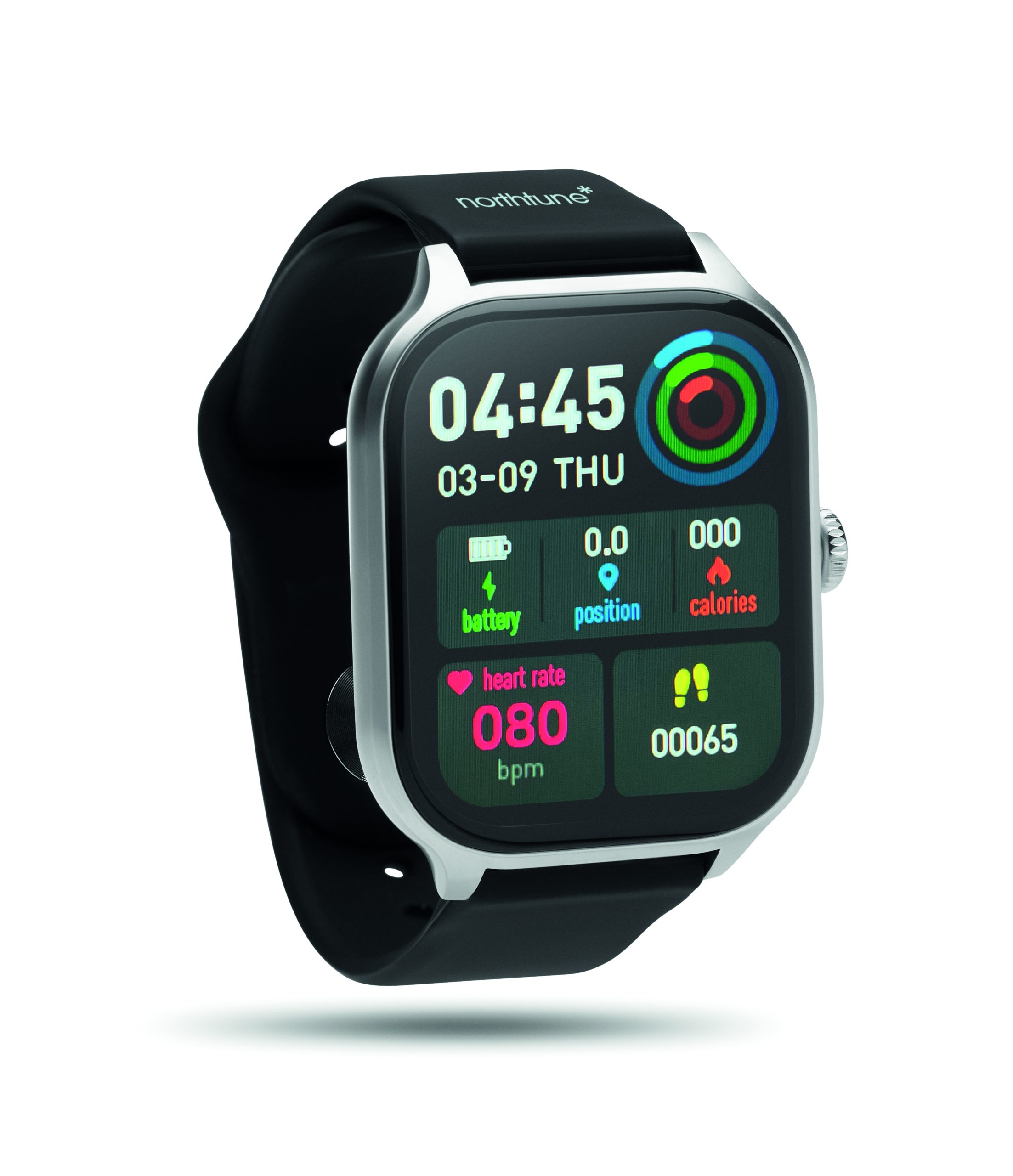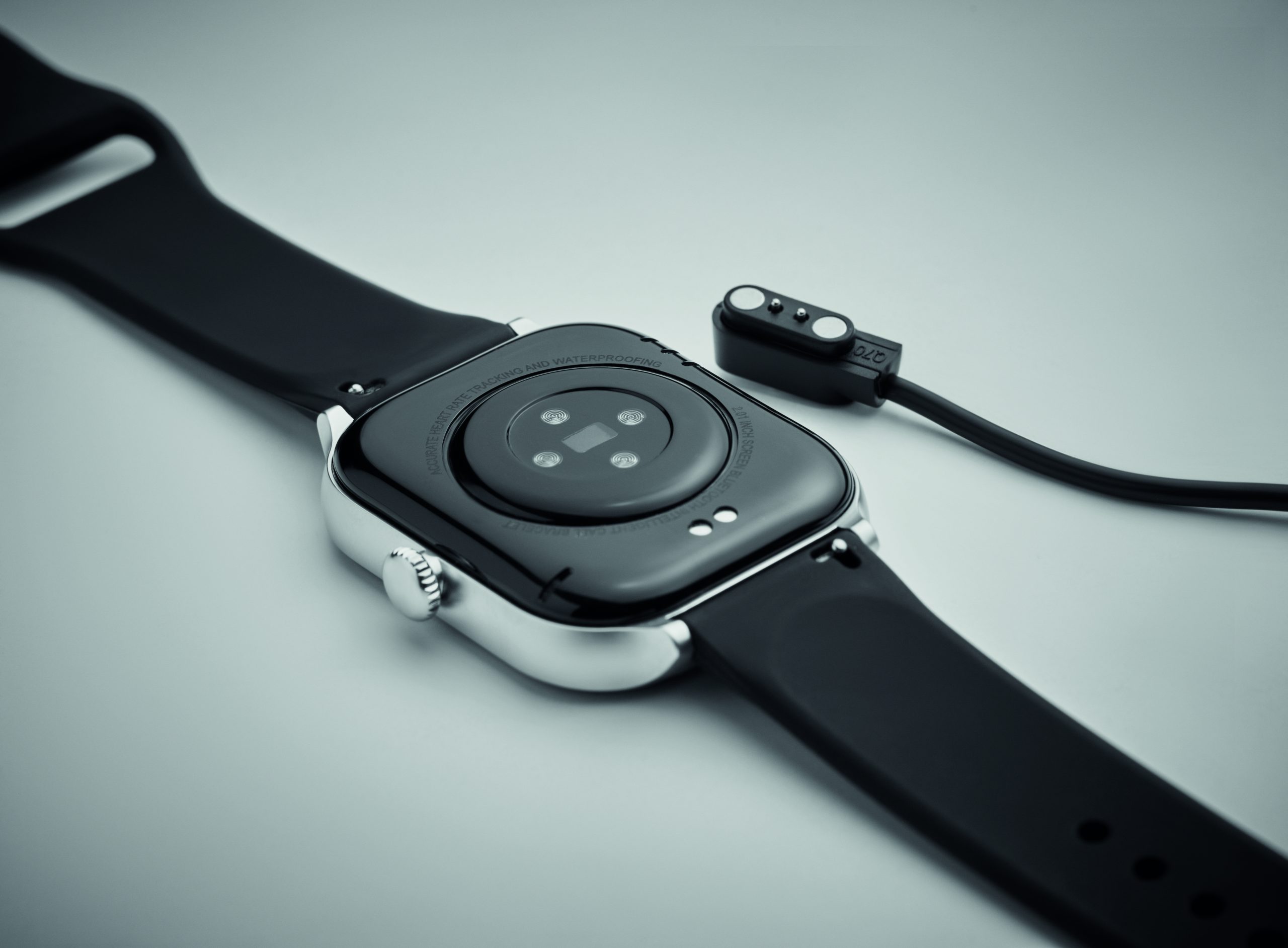 Bezprzewodowy smartwatch 5.4 ze stopu cynku z silikonowym paskiem. Dotykowy wyświetlacz LCD o przekątnej 2,01 cala. Akumulator Li-Pol 180 mAh. Wymaga pobrania bezpłatnej aplikacji (Fitpro dostępnej w systemach iOS i Android).