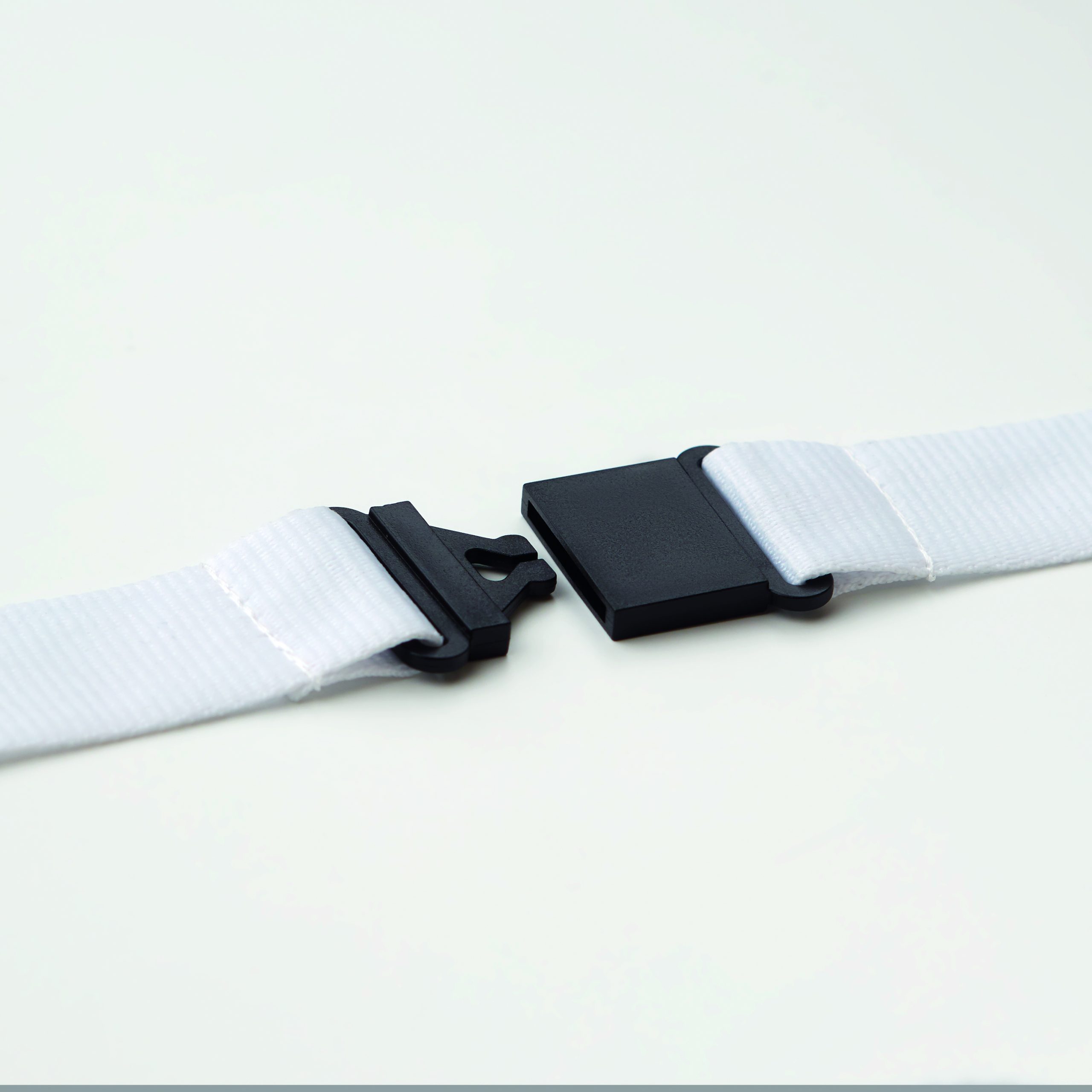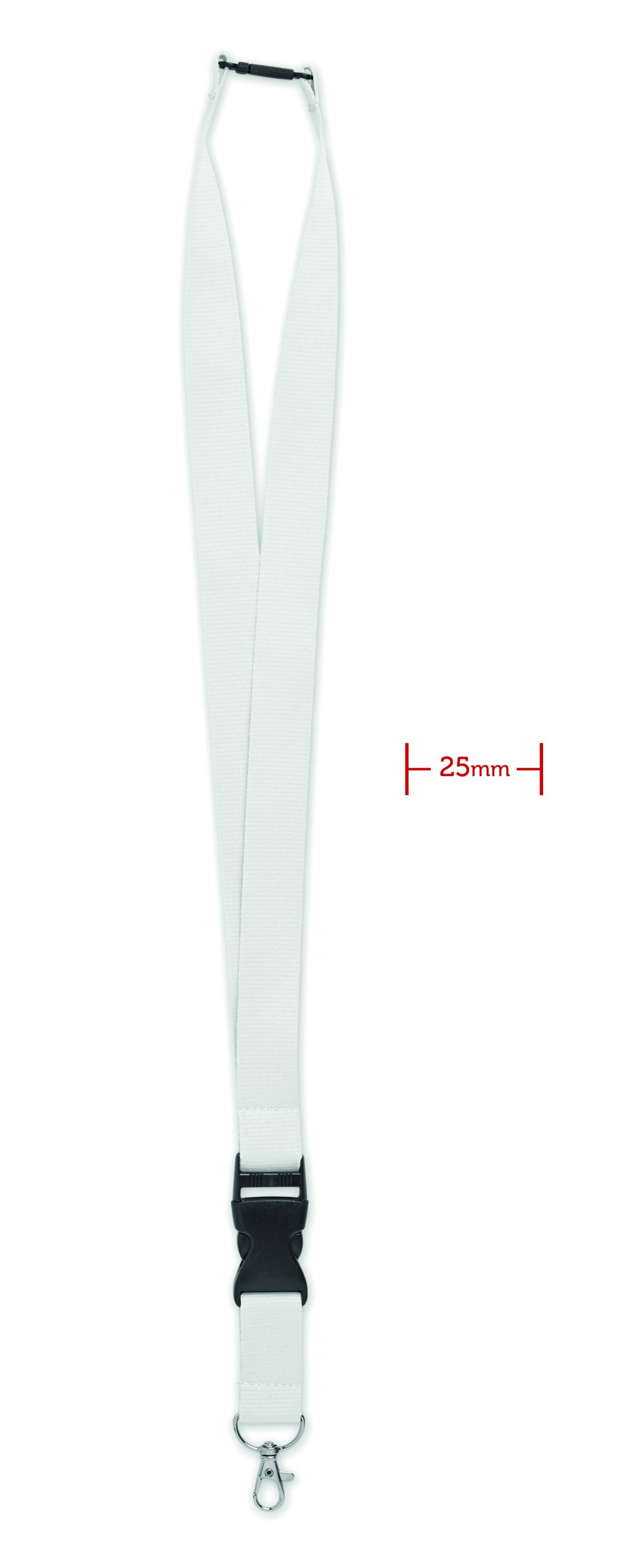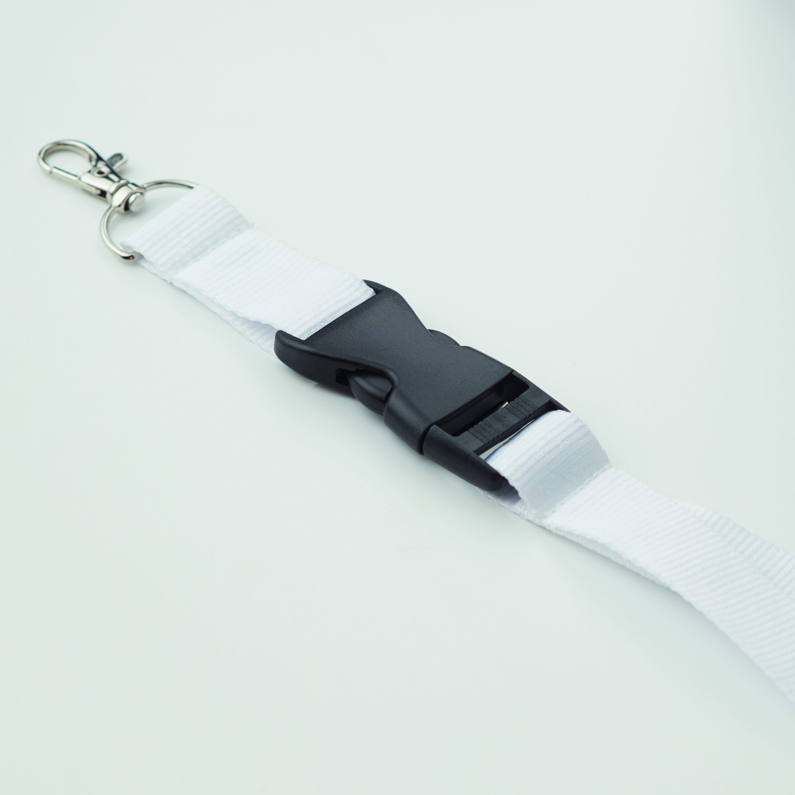 Smycz z metalowym zaczepem, odpinaną klamrą i złączką bezpieczeństwa. Szerokość 25mm. Znakowanie sublimacją jest możliwe tylko na białych produktach.