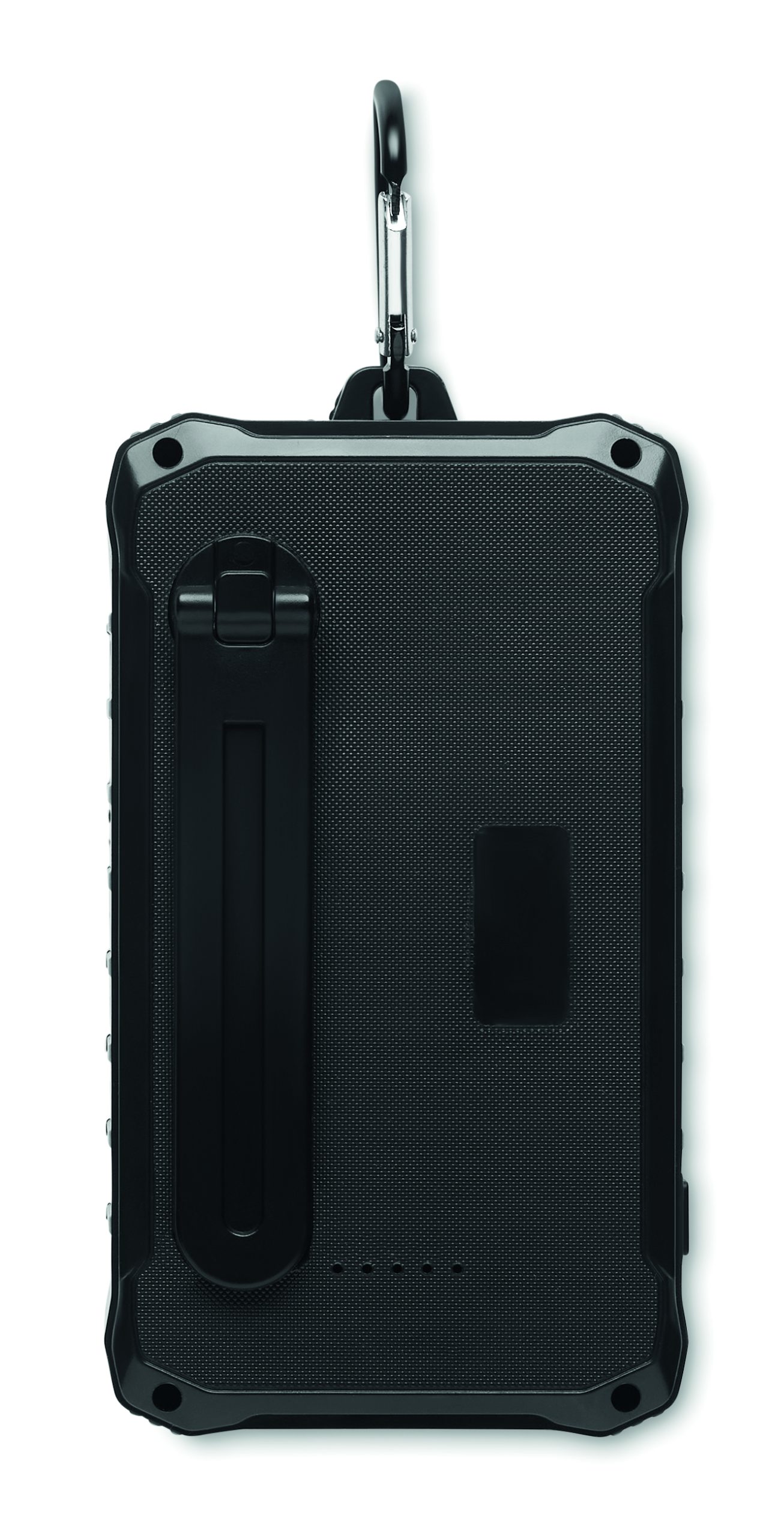 Solarny power bank 8000 mAh z dynamem na korbkę. W zestawie 1 lampka LED o mocy 100 lumenów. Wejście/wyjście typu C, 2 wyjścia USB-A. Wyjście DC 5V/2.1A.