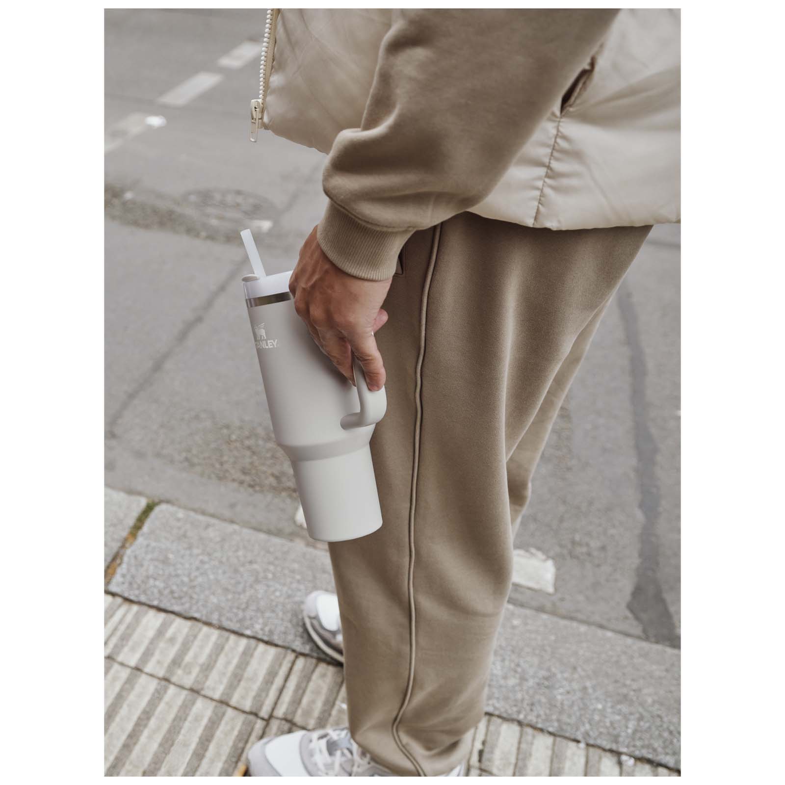 Kubek Stanley Quencher H2.0 o pojemności 1200 ml jest wykonany ze stali nierdzewnej pochodzącej z recyklingu, dzięki czemu jest bardziej przyjazny dla środowiska . Zaawansowana pokrywka FlowState™ posiada obrotową pokrywę z trzema pozycjami: otworem na słomkę zaprojektowanym tak, aby był odporny na rozpryskiwanie, a jednocześnie utrzymywał słomkę wielokrotnego użytku na miejscu, otworem na napój i w pełni zakrytą pokrywę. Dzięki izolacji próżniowej napój pozostanie zimny przez 11 godzin (48 godzin, gdy jest zmrożony). Ergonomiczny uchwyt ma wygodne wkładki ułatwiające przenoszenie, a wąska podstawa pasuje do większości samochodowych uchwytów na kubki.