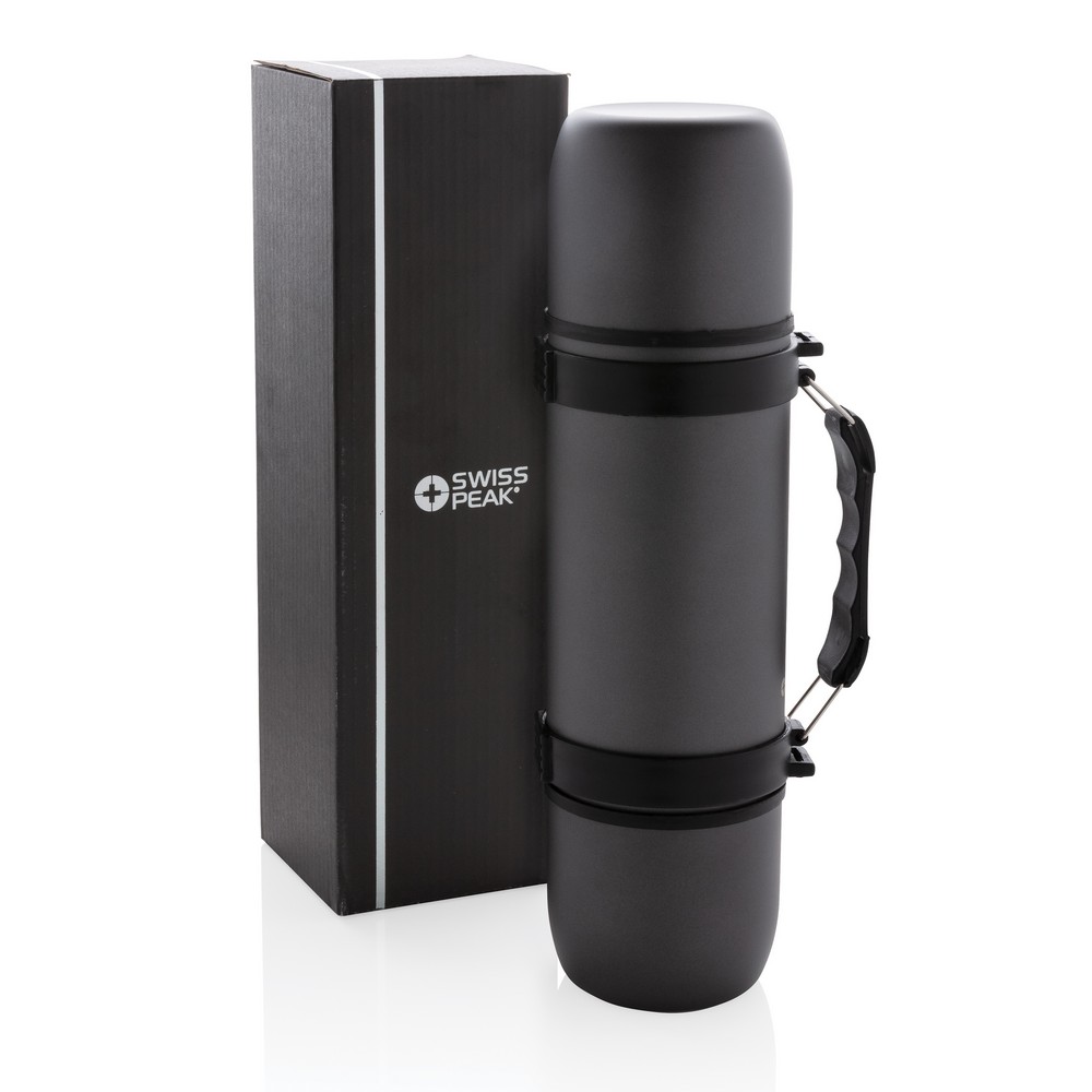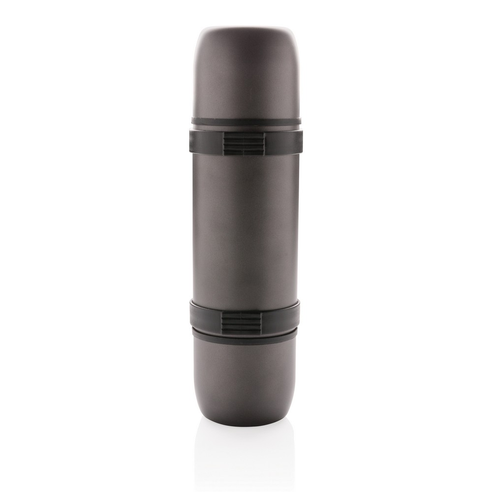 Termos 700 ml, wykonany ze stali nierdzewnej, podwójne ścianki, uchwyt, pasek na ramię i 2 kubki w komplecie, wyłącznie mycie ręczne, utrzymuje temperaturę napojów gorących do 20 godzin +leakproof