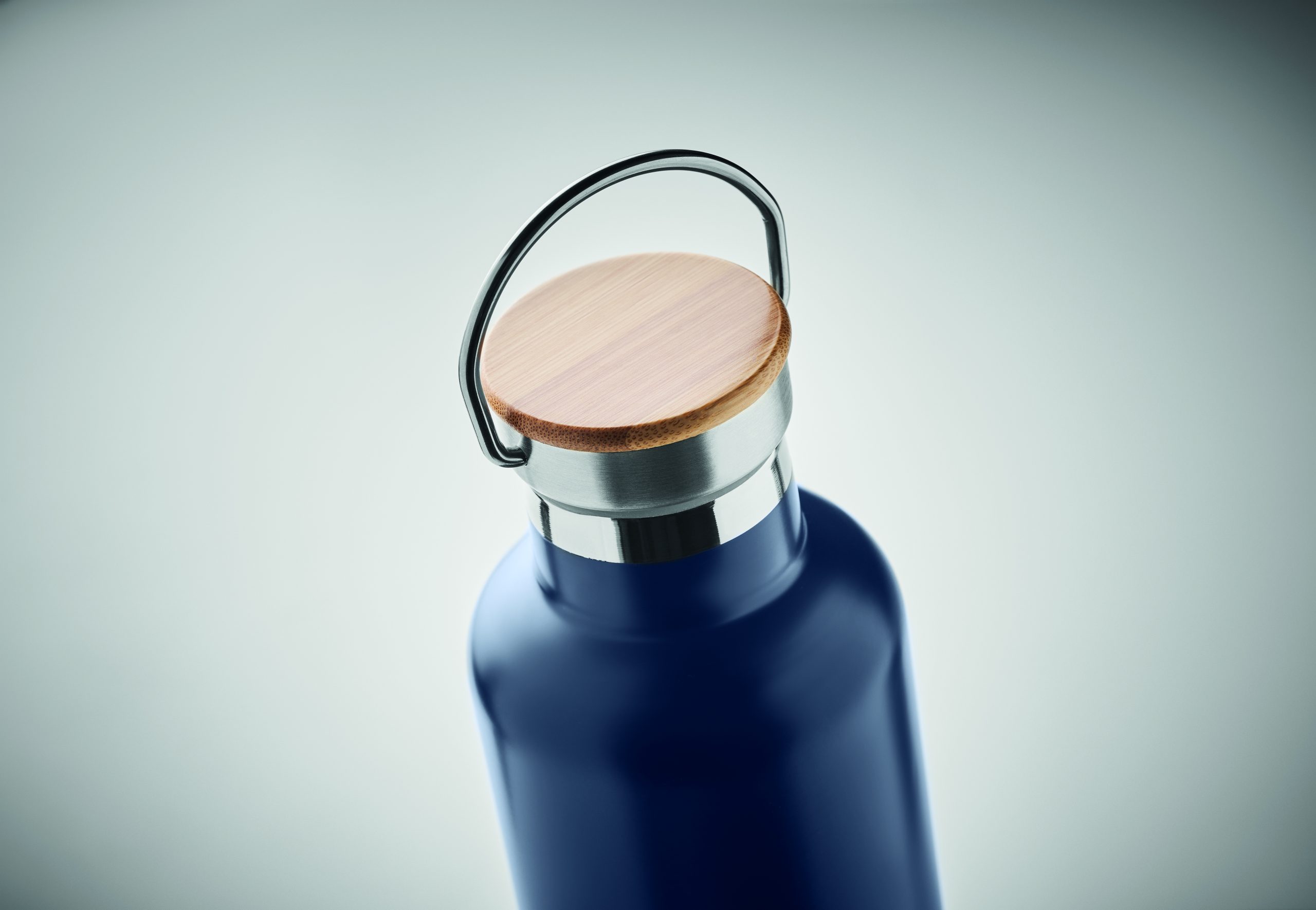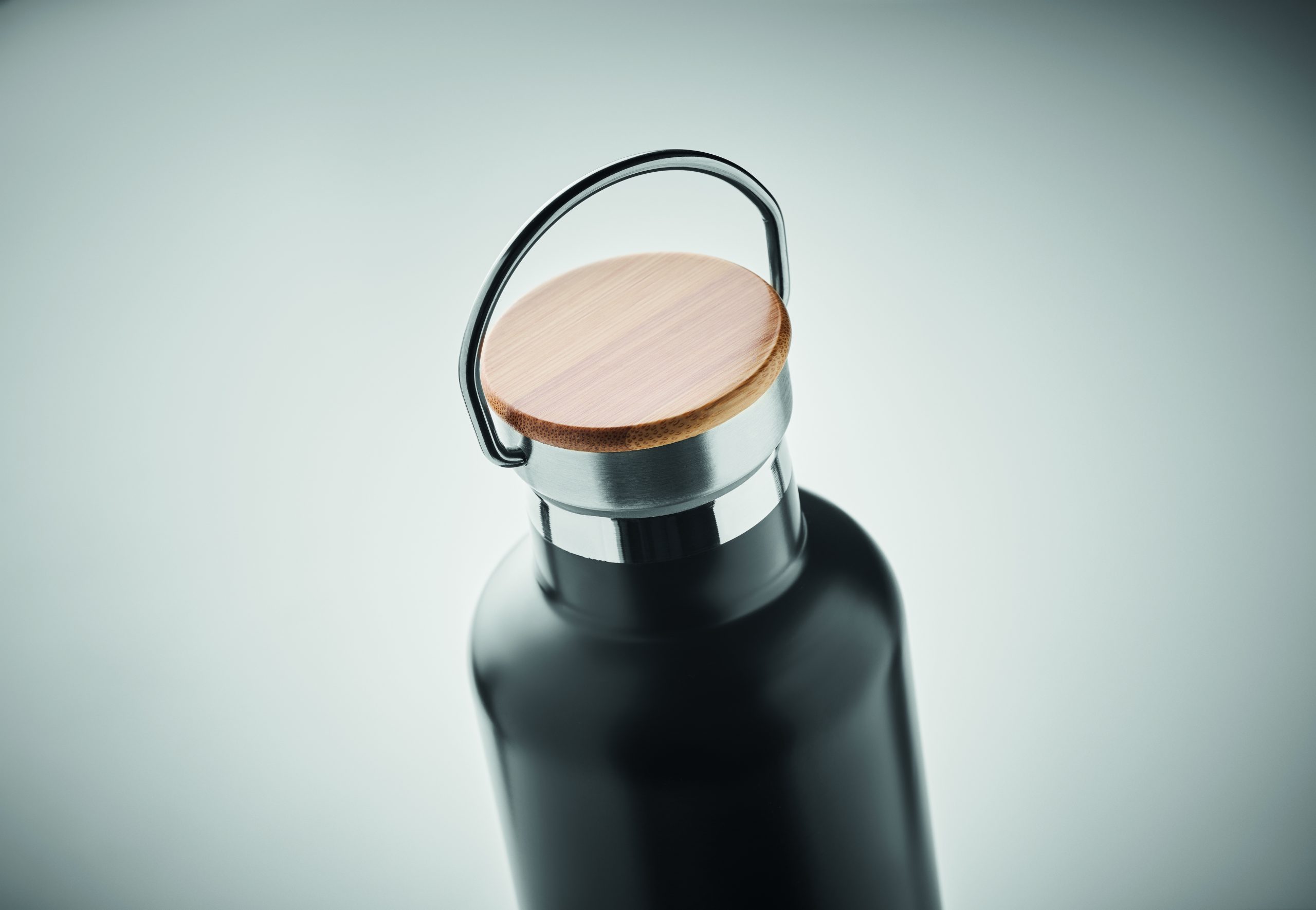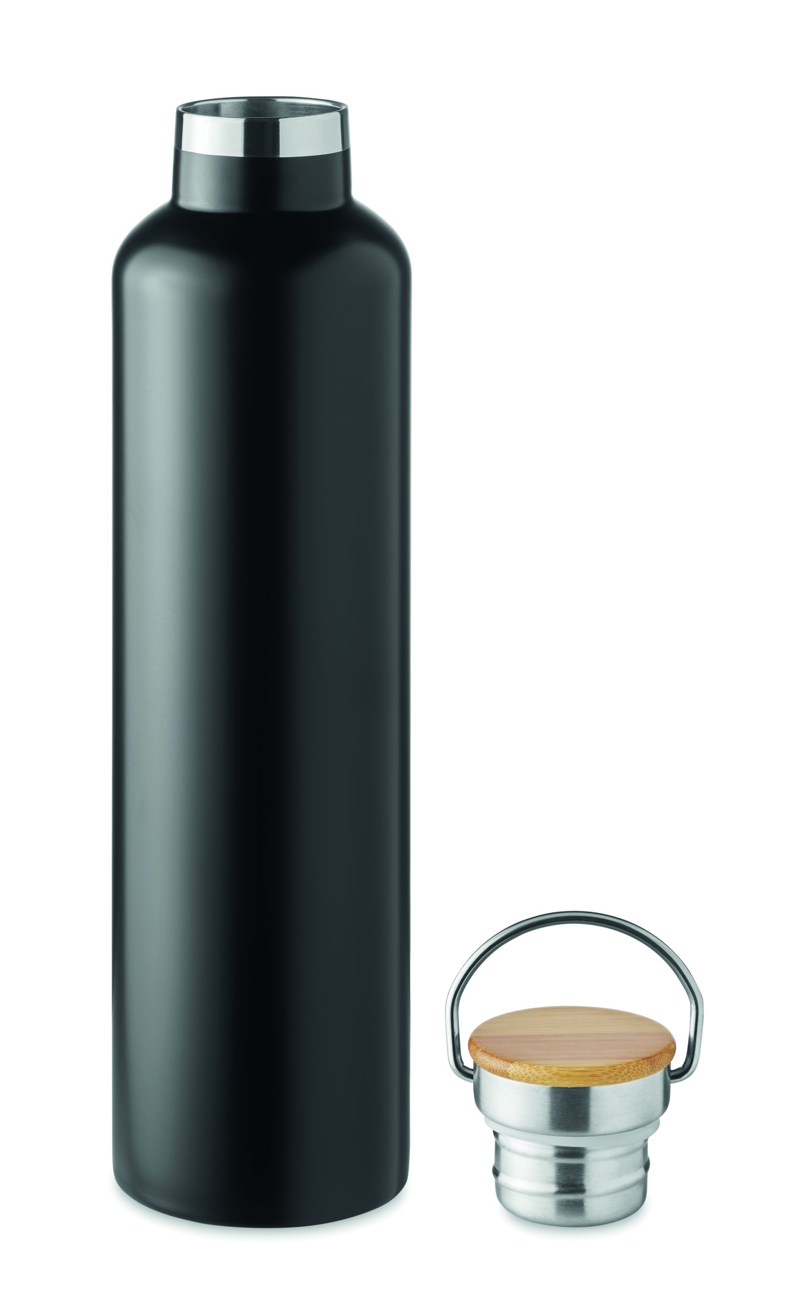 Dwuścienny termos próżniowy z bambusową pokrywą i uchwytem do przenoszenia. Pojemność: 1L. Bambus jest produktem naturalnym, dlatego mogą wystąpić nieznaczne różnice w kolorze, wzorze i rozmiarze.