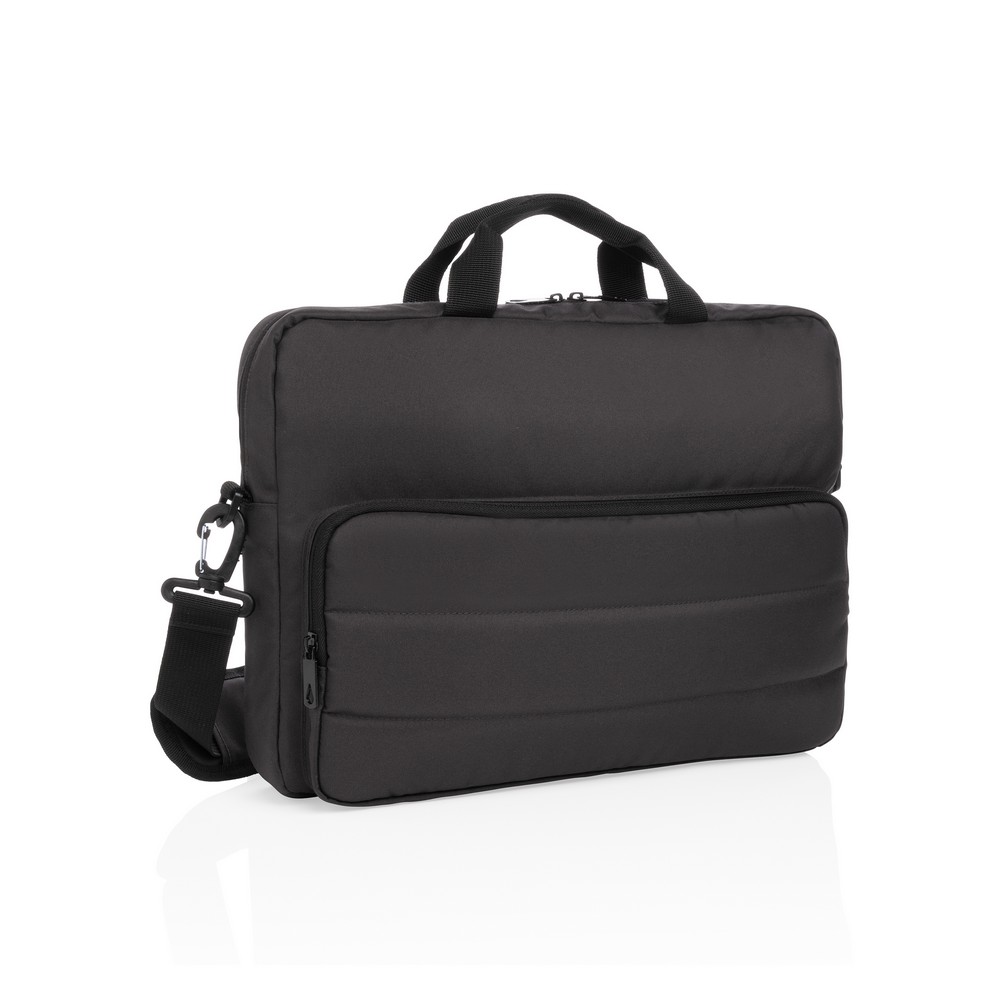 Torba na laptopa 15,6″, klasyczny wygląd z dwoma szwami z przodu, posiada wiele kieszeni, dwa uchwyty oraz odpinany pasek na ramię, tkanina zewnętrzna i poszewka wewnętrzna wykonane z pochodzącego z recyklingu poliestru AWARE™ RPET, a 2% zysku ze sprzedaży każdego jest przekazywane do fundacji Water.org, nie zawiera PVC