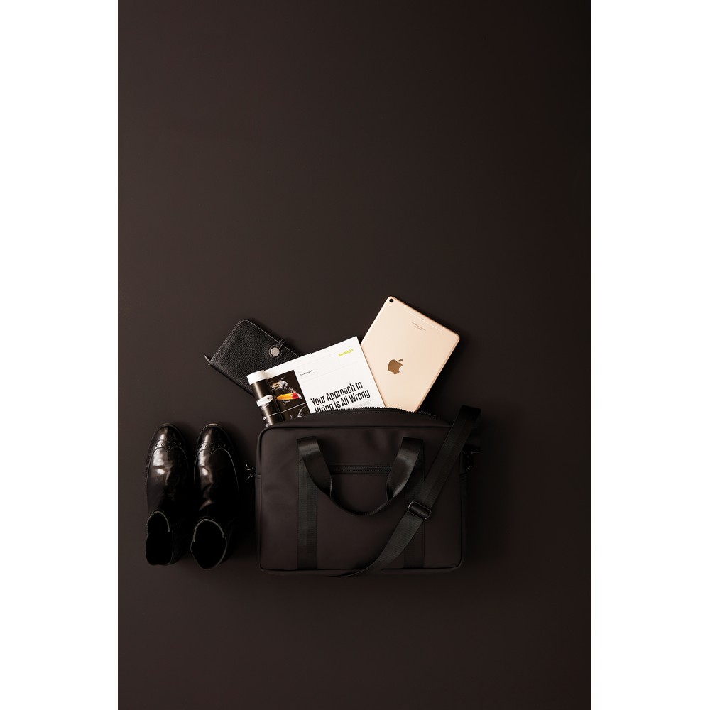 Torba na laptopa, wewnątrz kieszenie na drobiazgi, pasek do zamocowania na walizce, wykonana z wodoodpornego materiału, regulowany pasek na ramię