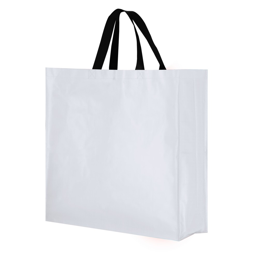 Torba na zakupy, posiada długie uchwyty umożliwiające noszenie na ramieniu, produkt wykonany z materiału non-woven RPET