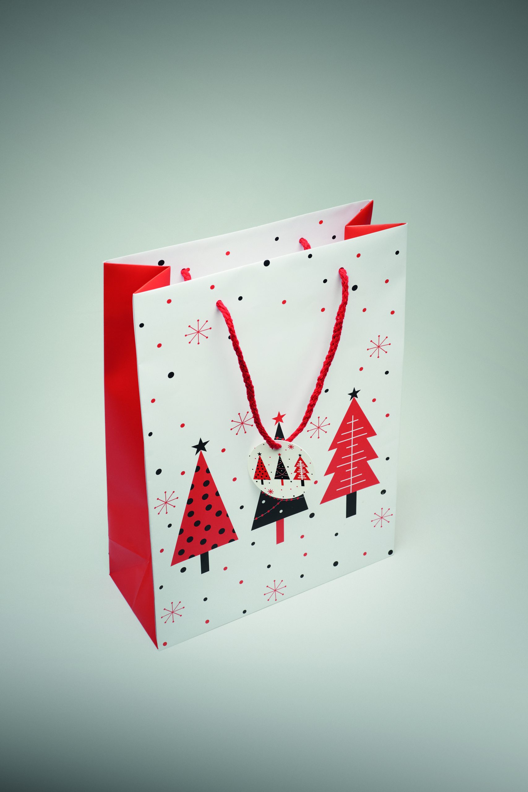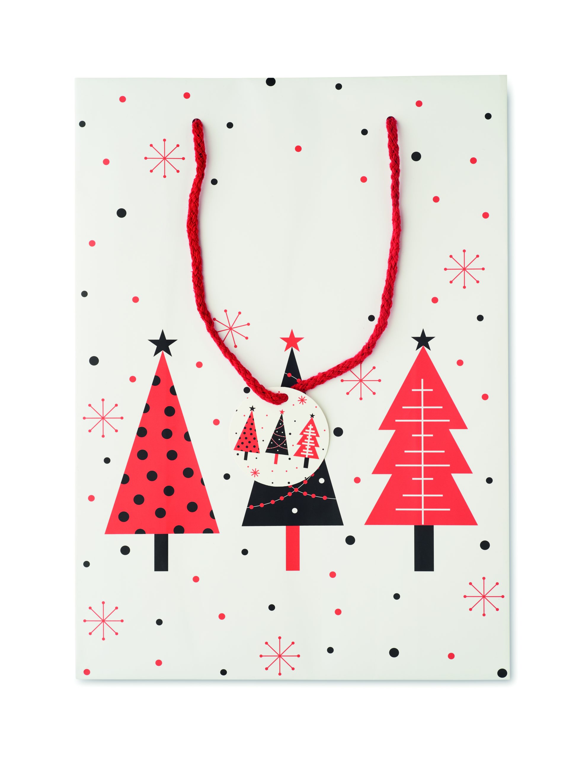 Świąteczna duża papierowa torba prezentowa (30% z recyklingu) z dołączoną przywieszką. 150 gr/m². FSC®-certified | FSC MIX, P5.3, FSC- C213206