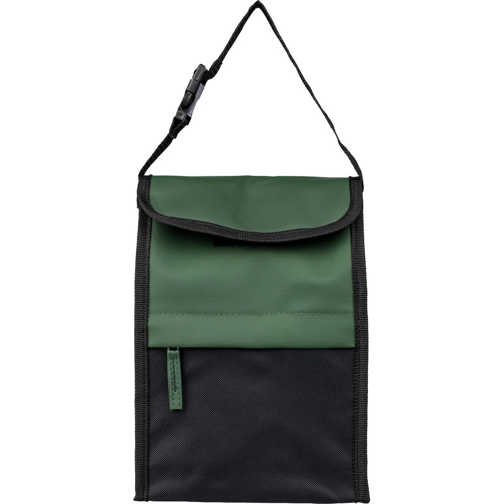 Torba termoizolacyjna, wyściółka z folii aluminiowej, przegroda główna zamykana na rzep, kieszeń z przodu zamykana na zamek, kieszeń siateczkowa z boku, uchwyt i pasek na ramię ułatwiające noszenie, pojemność: 5 l, wodoodporna powłoka z PU, ikona RPET na metce, produkt wykonany z RPET