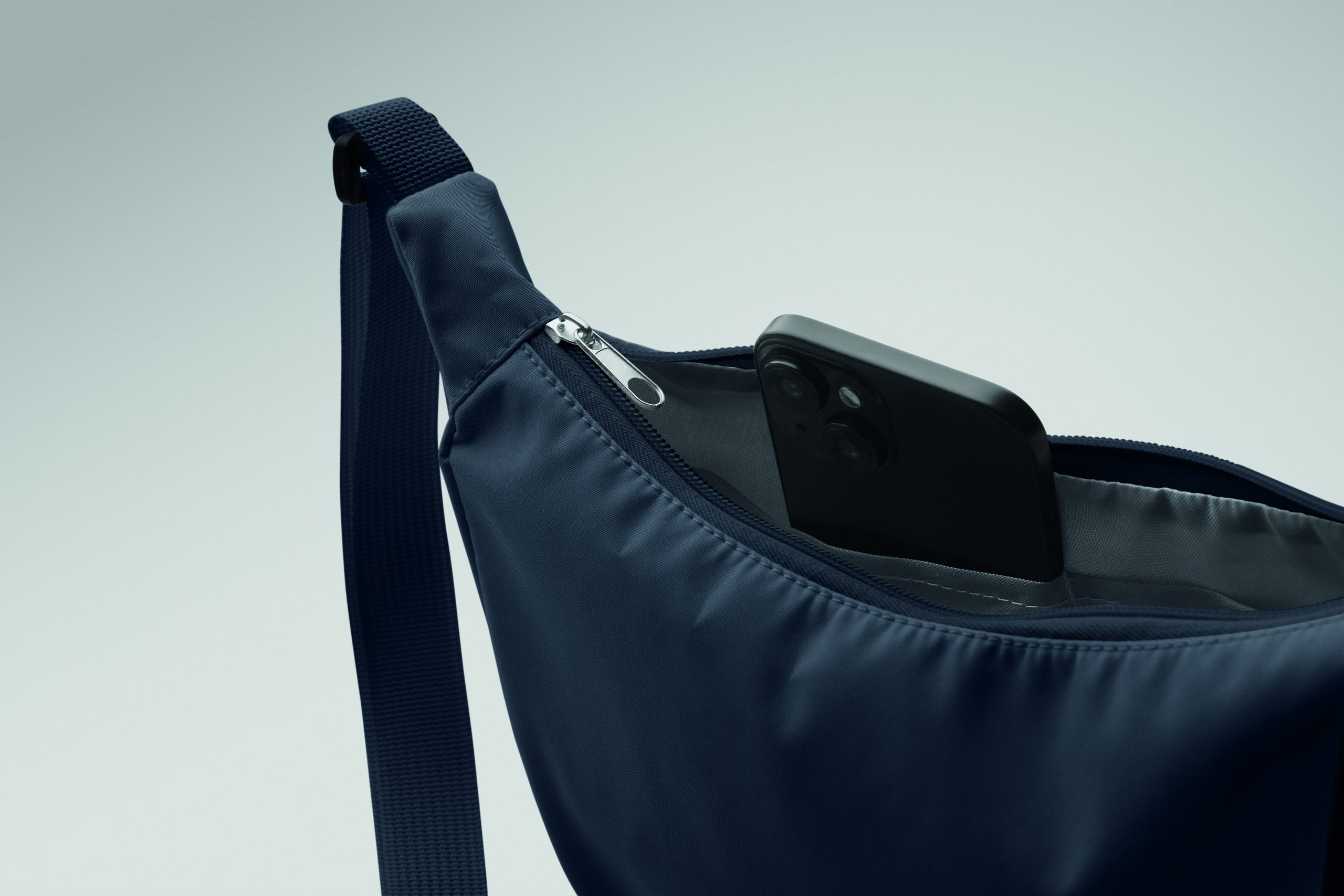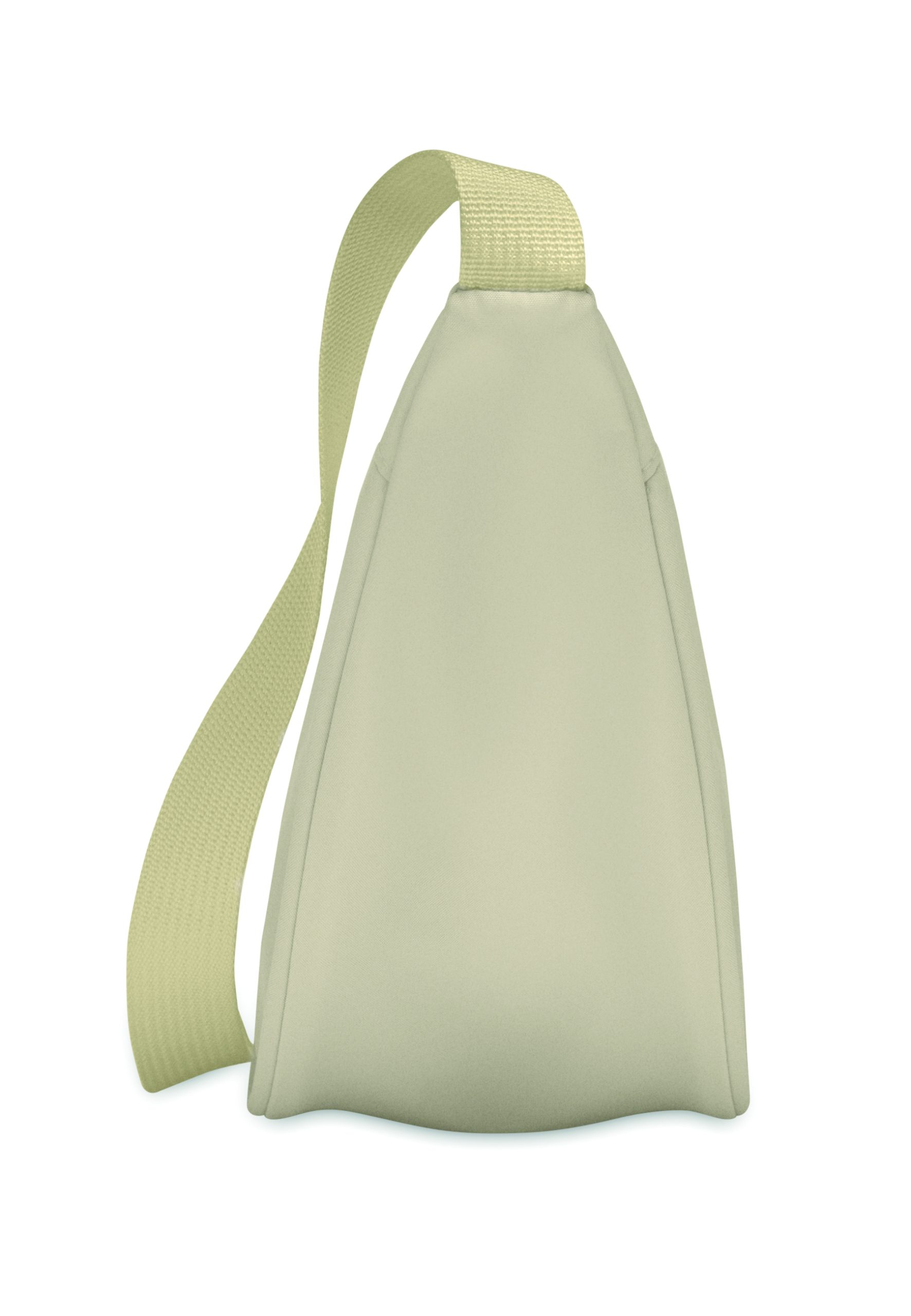 Torba typu sling lub cross body z materiału 400D oxford i podszewką 210D RPET. Jedna główna kieszeń zapinana na zamek i 2 kieszenie wewnętrzne.