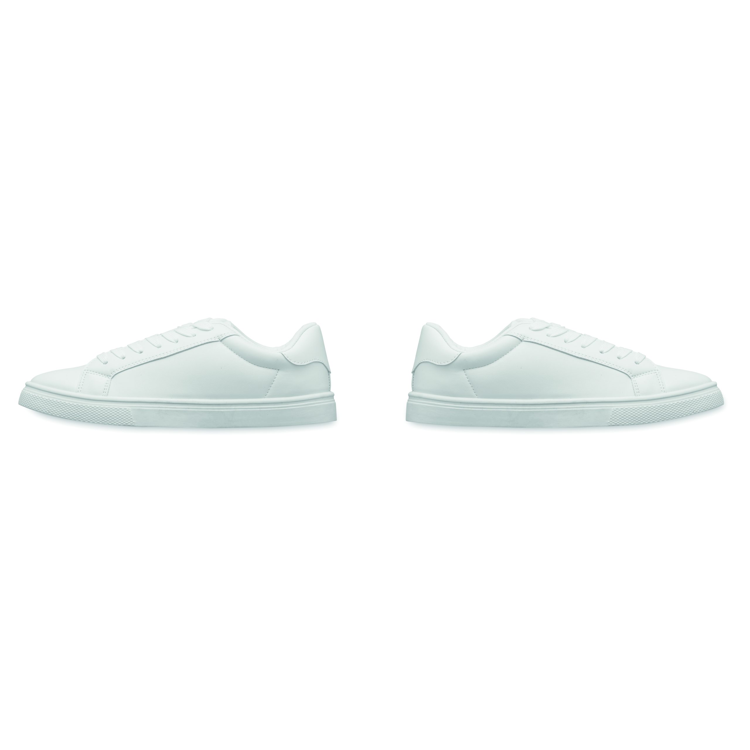Lekkie trampki z PU z gumową podeszwą zewnętrzną i poliestrowymi sznurowadłami. Rozmiar: 47. Zapakowane w białe pudełku na buty. Trampki są dostarczane ze sznurowadłami nawleczonymi tylko na 2 pierwsze oczka.