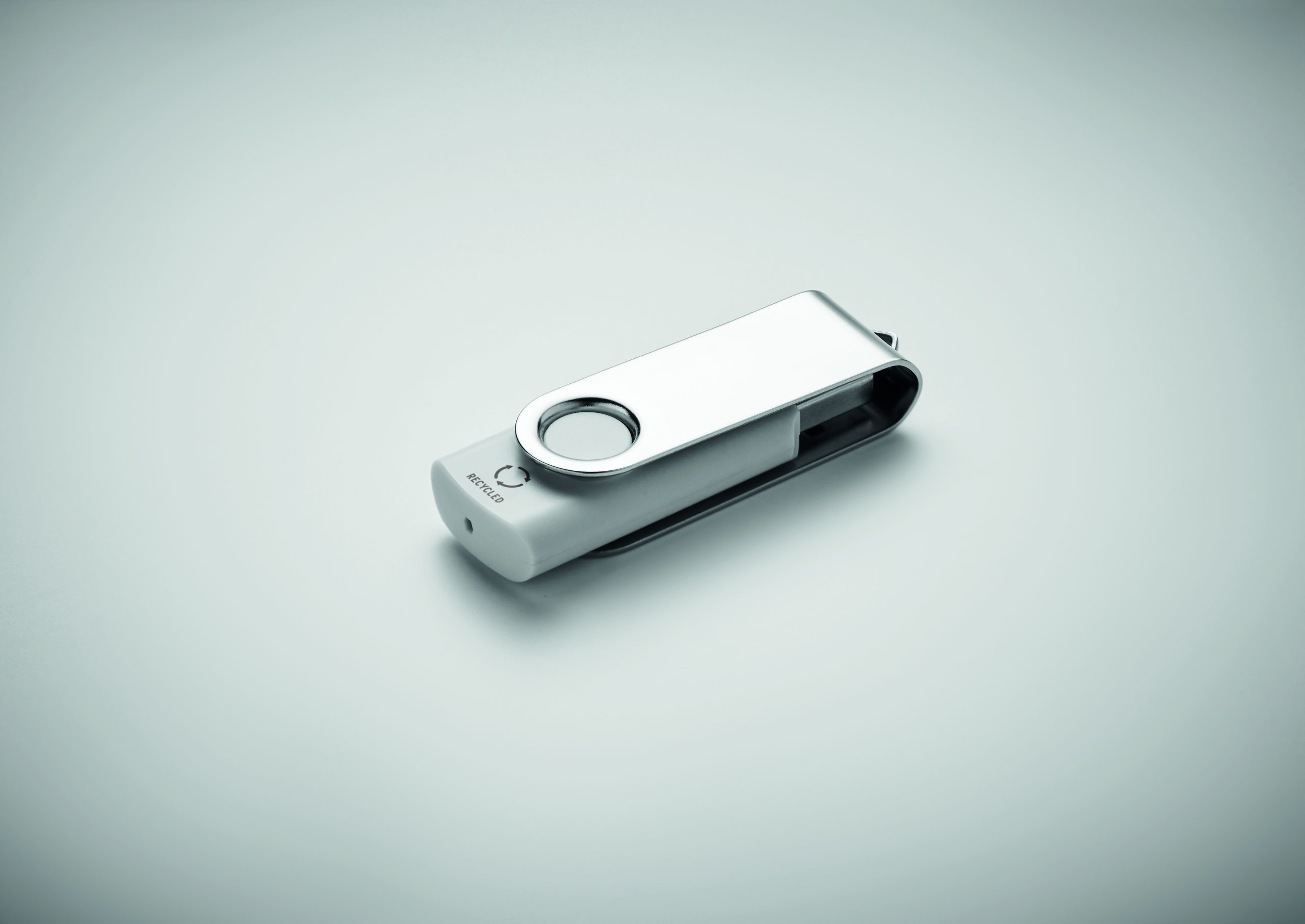 Pamięć USB 2.0 o pojemności 16 GB z ABS z recyklingu z ochronną osłoną i z białym wykończeniem. Obróć metalową osłonę i podłącz do portu USB.
