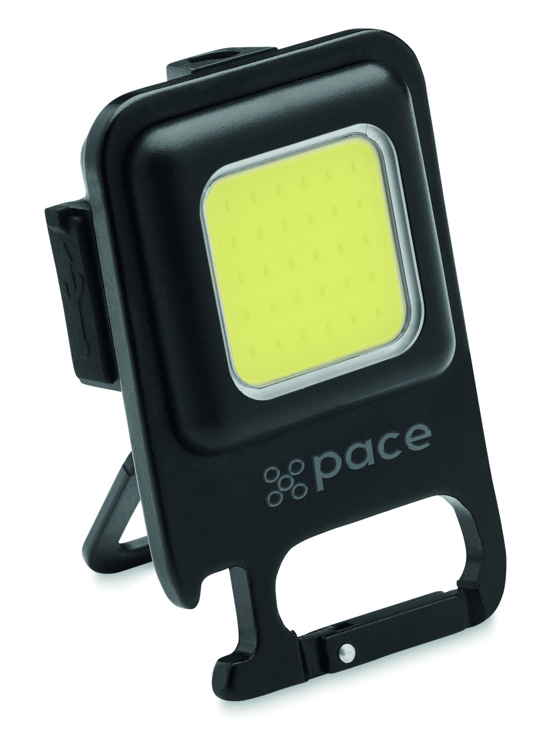 Wielofunkcyjna mini przenośna latarka 400 mAh ładowana przez USB aluminiowa 6W COB z magnesem, karabińczykiem i otwieraczem do butelek. Strumień świetlny: 800 lm. 3 tryby świecenia (wysoki, niski i pulsacyjny).