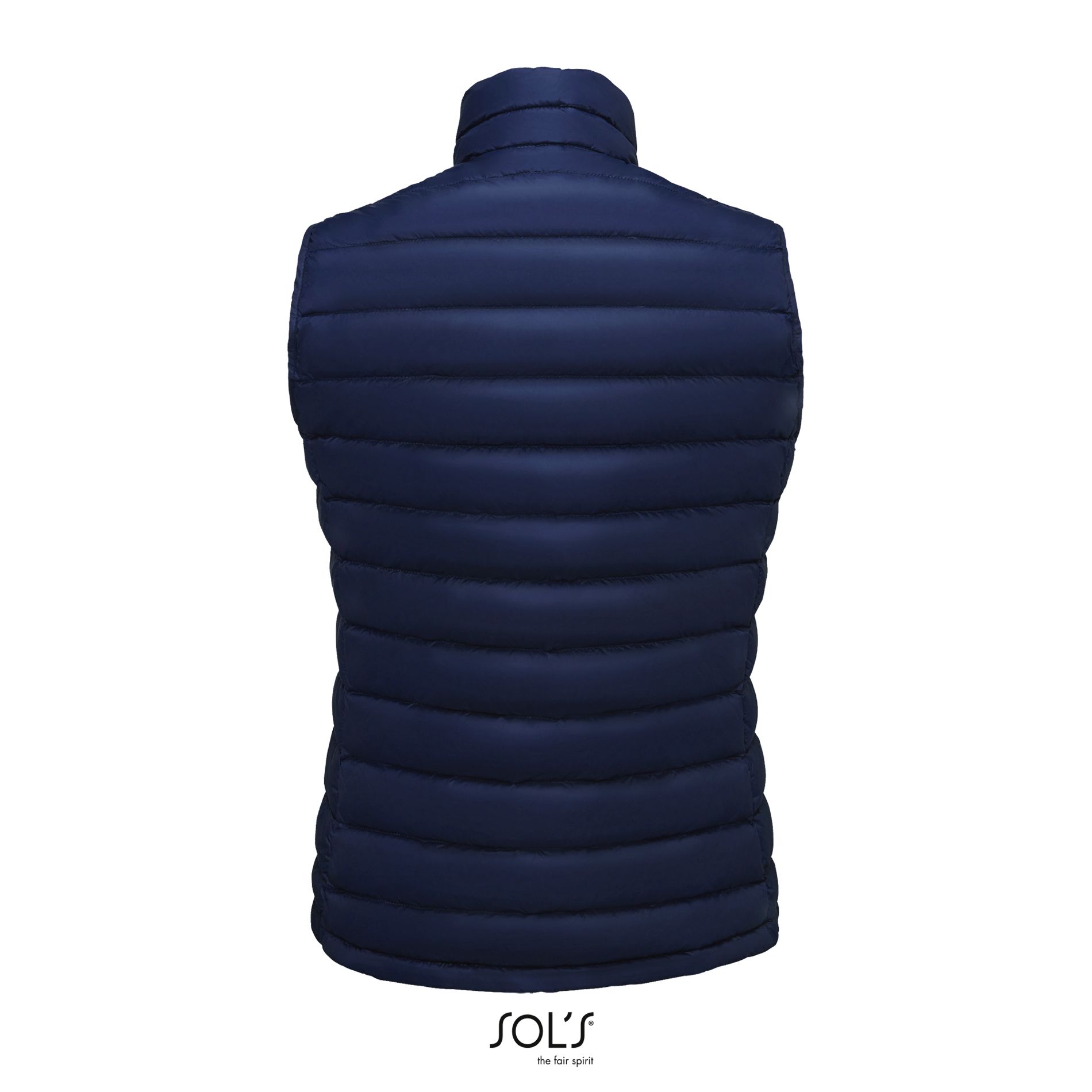 SOL’S WILSON BW WOMEN. Damska lekka puchowa kamizelka. Materiał zewnętrzny i podszewka: 100% poliamid. Wyściełanie: 60% Sorona, 40% poliester z recyklingu. POLIAMID 380T, zapinana zamkiem błyskawicznym, 2 przednie kieszenie na zamek błyskawiczny, 2 kieszenie wewnętrzne. Mały wysoki, kołnierz, dopasowany krój, system składania ”In bag” ze stoperami. OEKO-TEX®. Sprzedawana tylko z nadrukiem.