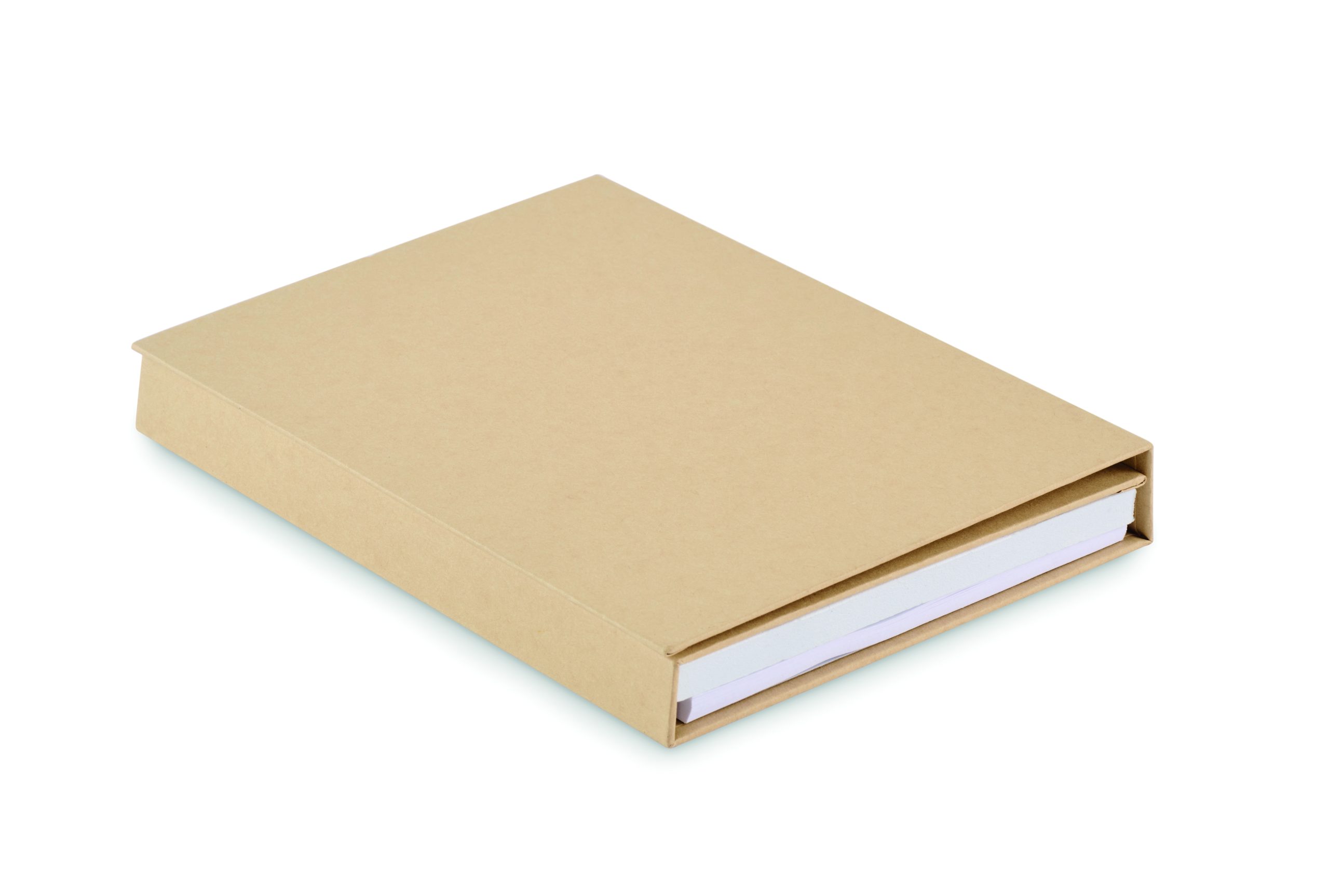Zestaw piśmienniczy z notesem z okładką z kartonu pochodzącego z recyklingu. 70 kartek w linie z recyklingu. Karteczki samoprzylepne i znaczniki. Długopis z papierowym korpusem i elementami z ABS, temperówka z ABS, 2 drewniane ołówki, drewniana linijka 15 cm, gumka i kątomierz z PP.