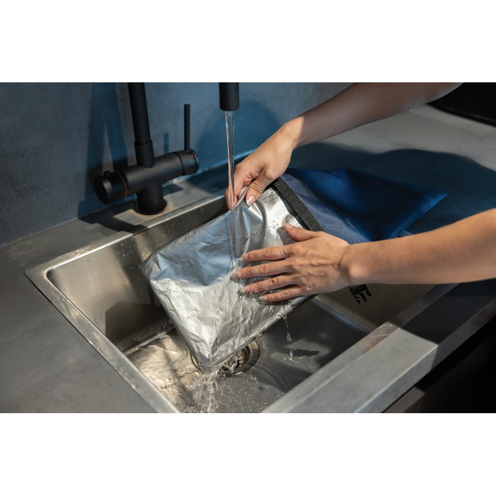 Torba termoizolacyjna, zwijana konstrukcja, regulowany rozmiar, szczelne zamknięcie, dzięki zastosowaniu technologii AWARE™ wykorzystane włókna są identyfikowalne z pochodzenia oraz wyprodukowane zgodnie z ideą zrównoważonego rozwoju, 2% wpływów z każdego sprzedanego produktu z AWARE™ jest przekazywane na rzecz Water.org